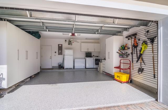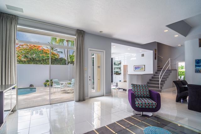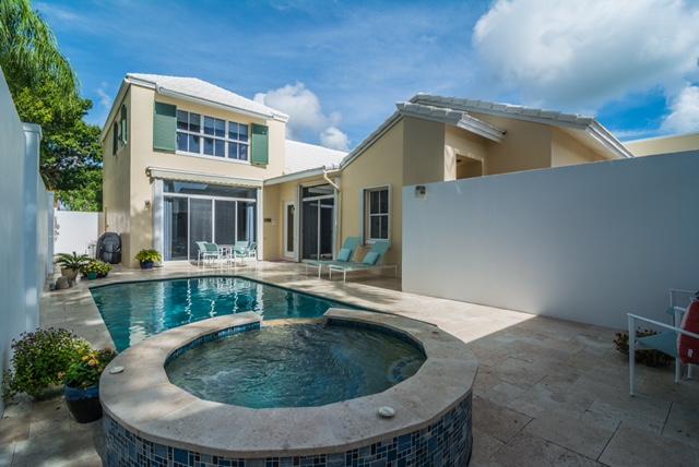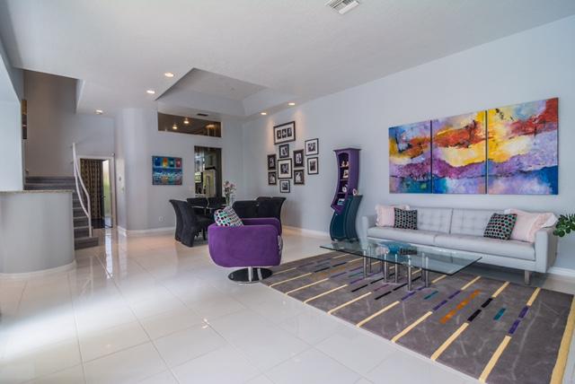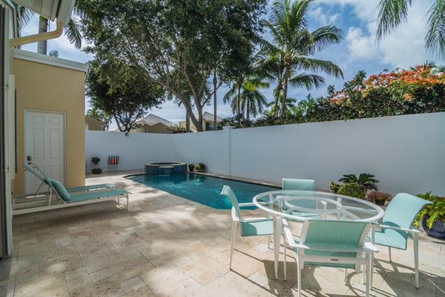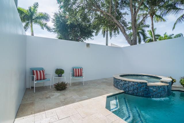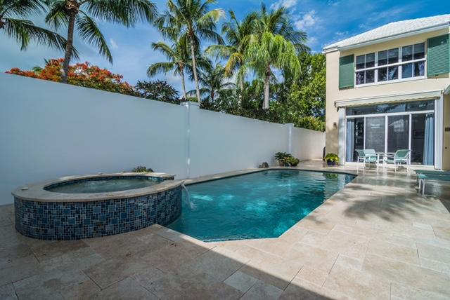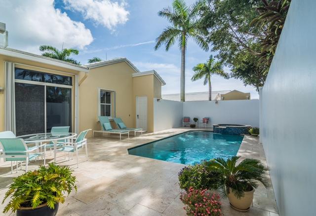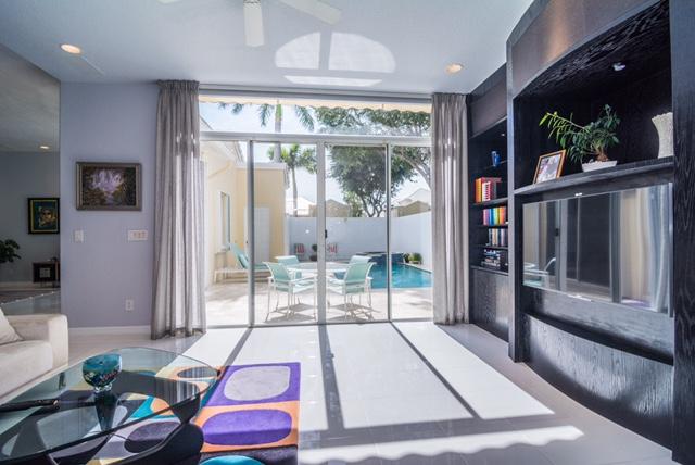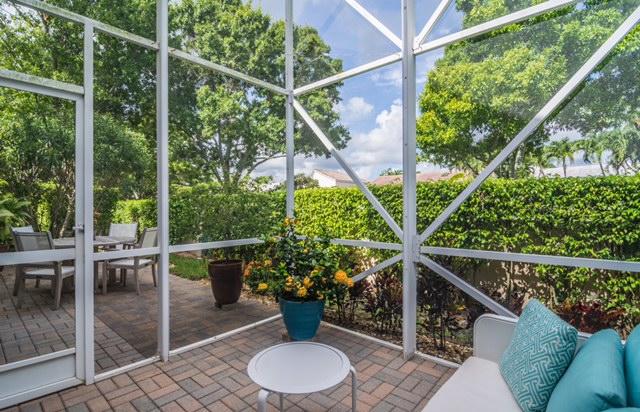 Contemporary two story home in Bermuda Village at Boca Country Club.No Mandatory Membership, 24 hour manned-gated community.Both Bedrooms w/ ensuite Bathrooms.3rd Bedroom currently used as den & can easily be reconverted.Bright great room overlooks a private courtyard with recently renovated, heated, salt water pool w/ new pump that can run from an app on your phone. Retractable sun shade, new carpet, new lift master garage door opener, tons of custom garage cabinetry, durable floor finish in garage, custom window treatments throughout.TVs in Family room & Bedroom along w/ the audio systems already in place are included w/sale. Recently remodeled kitchen w/ Bosch appliances & floor to ceiling cabinets, roof has been replaced, hurricane shutters, upgraded bathrooms & much more...call today!