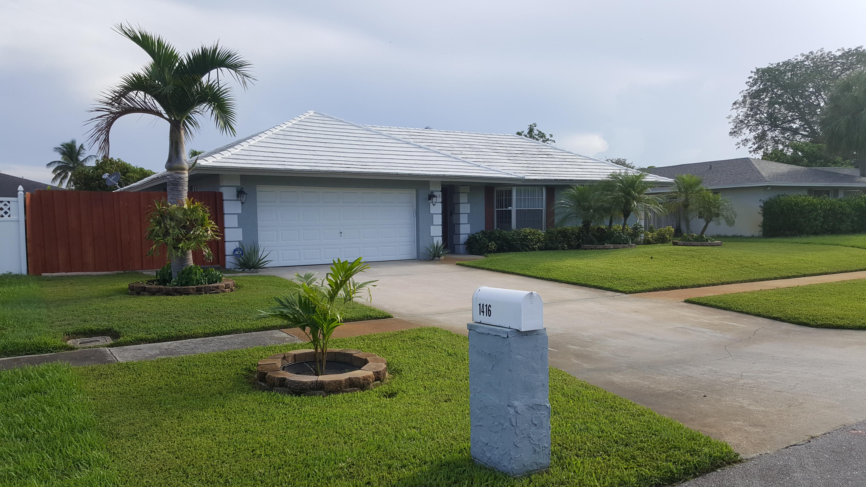 Ready to move in. Beautiful 3 bedrooms, 2 baths, 2 car garage Single Family Home in the desirable Woodcrest Subdivision of West Palm Beach.This flat tile roof property features ceramic tiles and laminated floors thru out. The kitchen has been recently updated with granite counter tops. Bathrooms have been also recently upgraded.Living room, dining room, breakfast area, utility room and a comfortable family room. Enjoy the family in the covered and screened patio and large back yard.The A/C unit has been also updated recently. Bricked driveway at the front and on the sides.Come and take a look today.This is the property to call ''HOME''