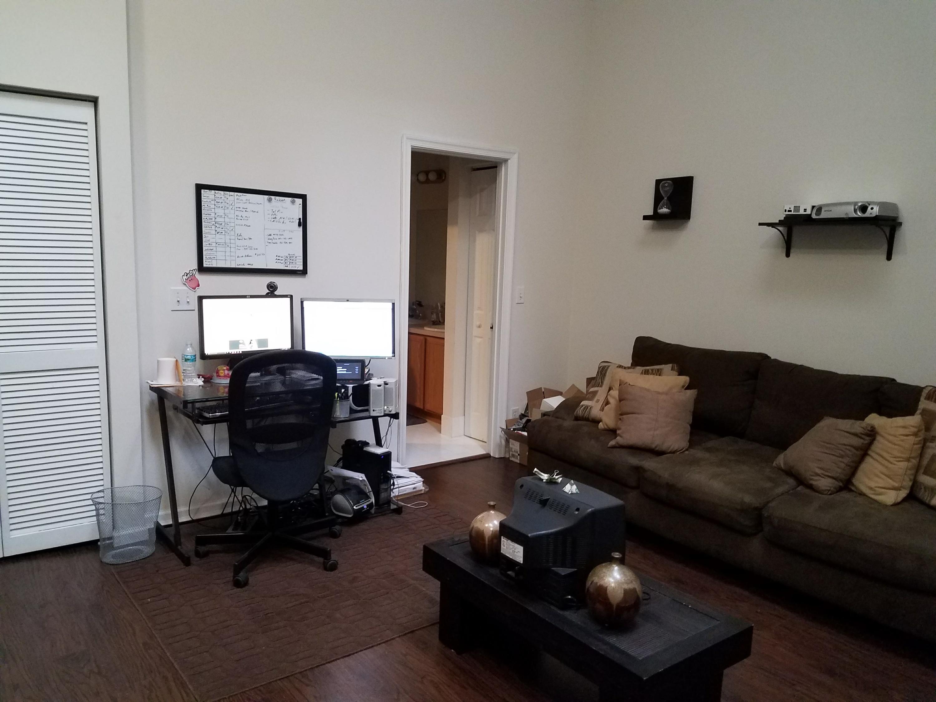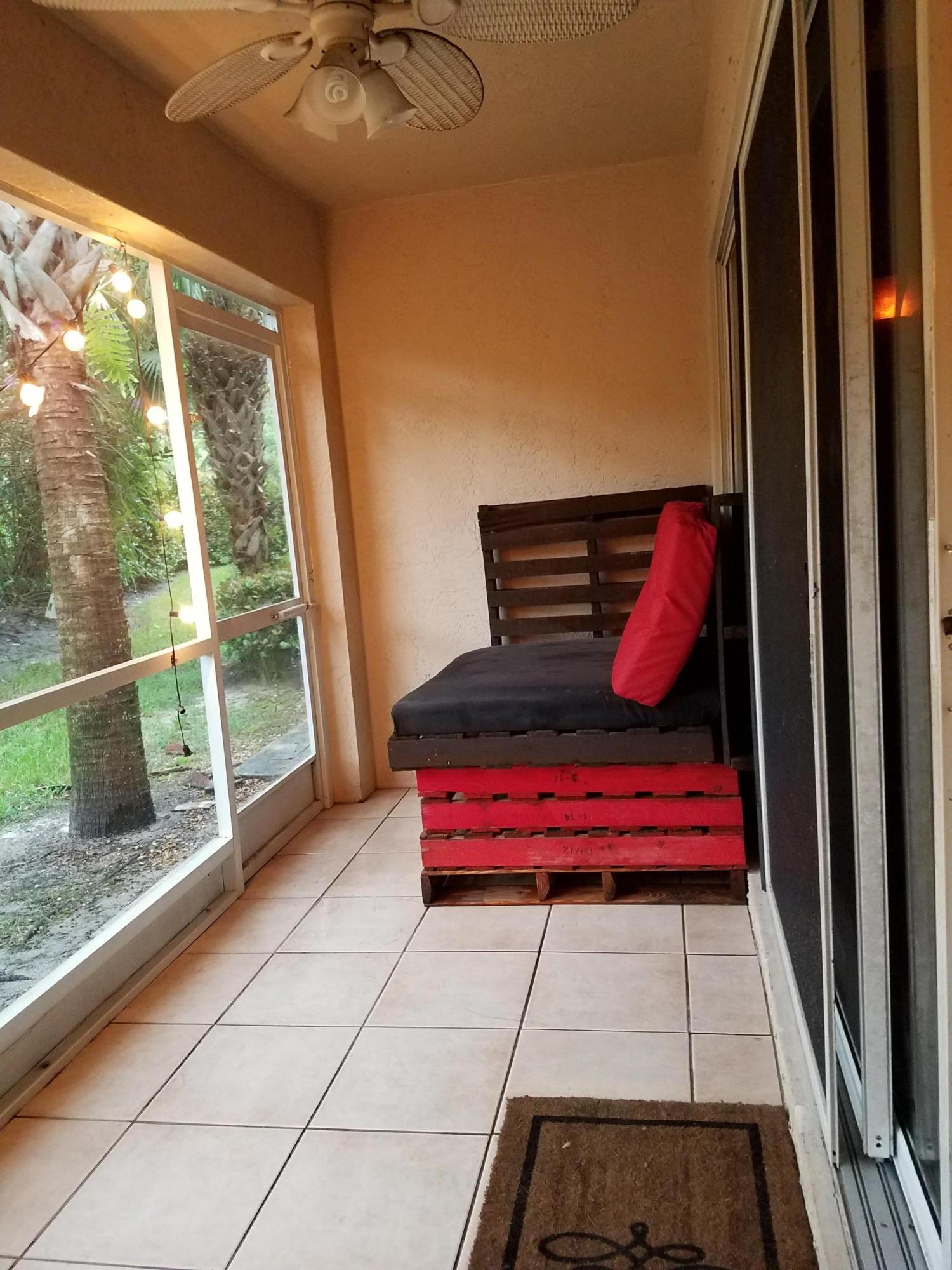 Location, Location!Renovated townhome directly across from clubhouse. Home features NEW: A/C unit, stainless steel appliances, back splash w/ granite counter tops and wood cabinets. All new laminate floors through out entire unit. Large mstrbdrm with 2 walk in closets and bathroom completed upgraded.Two bdrm plus loft with beautiful sky lights with closet & bathroom that can easily be converted.All new light fixtures. Covered screen patio. HOA fees include: Bldg ins, lawn care, cable, internet, home monitored security system, roof maintenance, unmanned gate, clubhouse and common areas. Lots of extra guest spots. Close to new stadium,shopping, restaurants,schools, I95 & Fl turnpike. Must see!