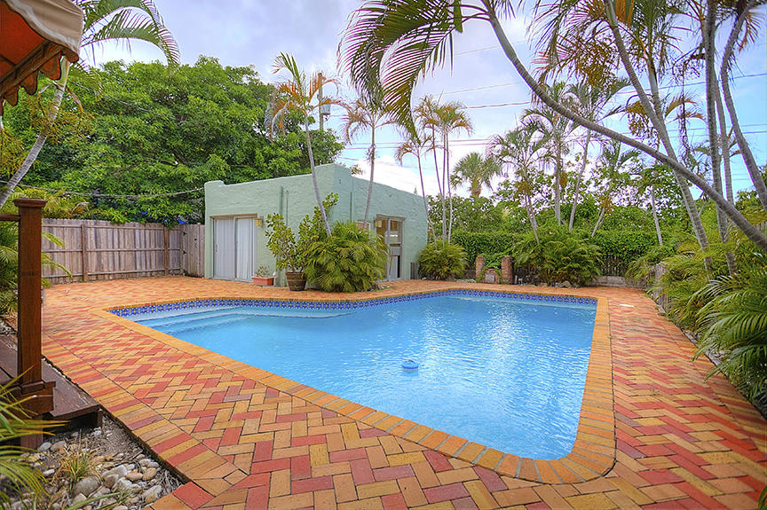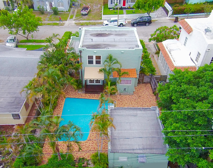 Look no farther! A 2-story Spanish style home with pool, guesthouse and covered wraparound porch 2 miles from Downtown and less than a mile from Northwood Village. The main house boasts 3 bedrooms, 1.5 baths, dade county pine hardwood floors, perky cypress ceilings, a fire place, french doors leading out to the pavered patio with welcoming pool. Re-roof done in 2009. Pool/patio renovated 2010. New hot water heater. Newer 2-zone split AC units. The cottage has a full bathroom and kitchenette.