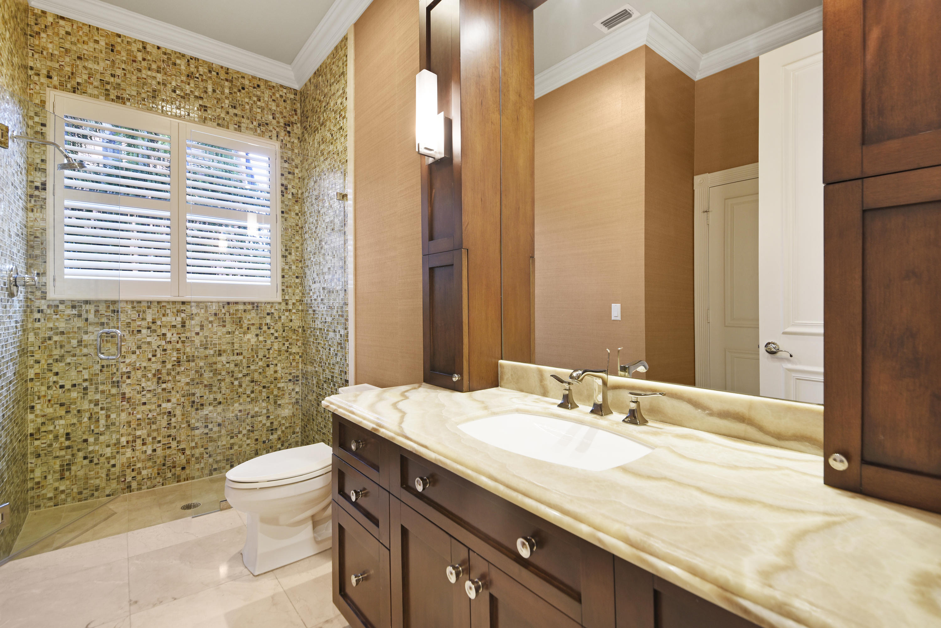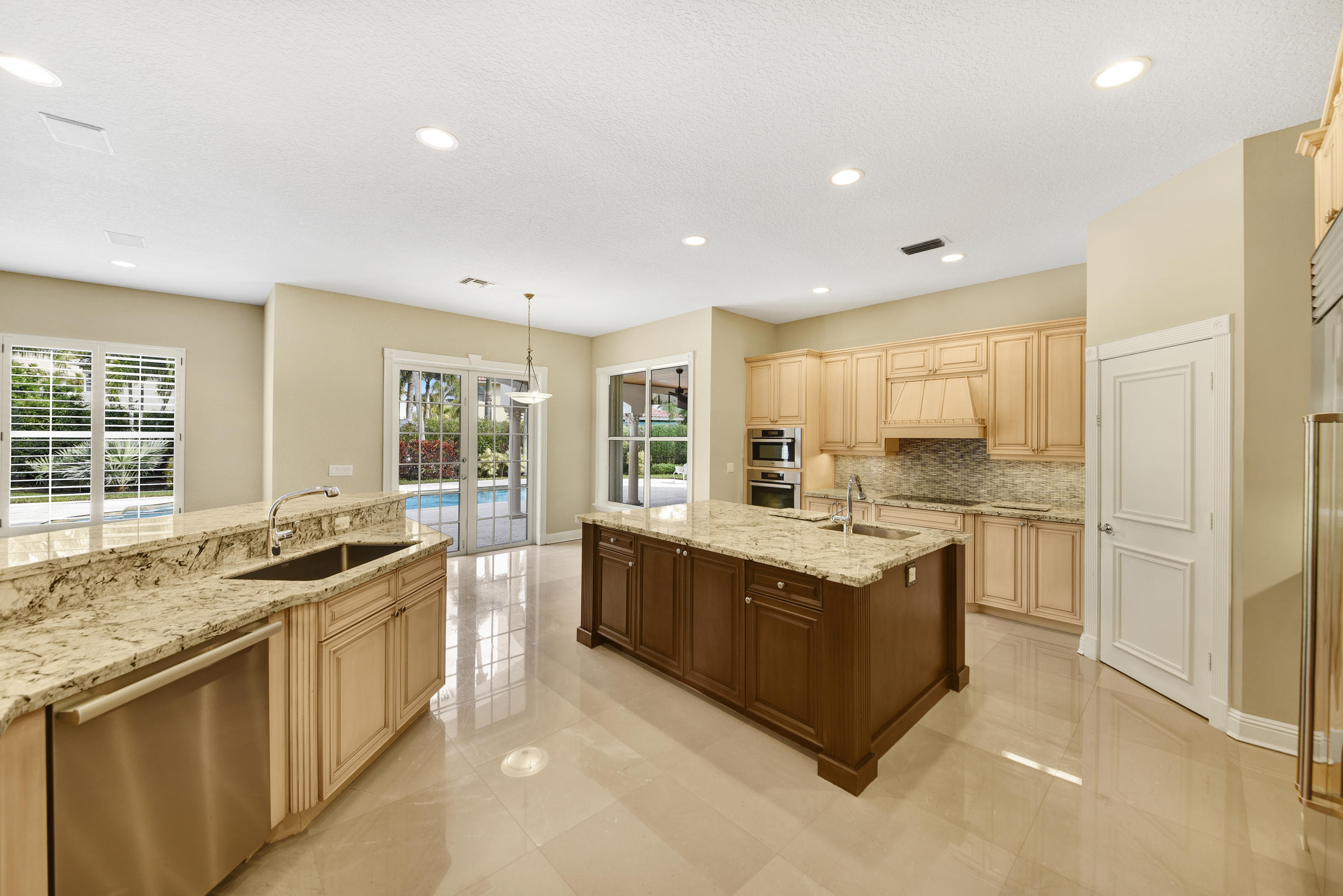 Former Developer home. One of the largest homes on one of the best lots within Boca East Estates. In addition to 5 bedrooms and a playroom is a sensational loft/upstairs recreation room that leads out to a 350 square foot balcony surrounded by mature, 30' coconut palms which overlooks pool. 10' ceilings downstairs, extra large kitchen with walk-in pantry marble floor. Remainder of 1st level, beautiful oak planked flooring. Living room has a wood burning fireplace. French doors throughout. Huge covered patio with bar /grill refrigerator, ice machine etc. One of the largest backyards in the subdivision.