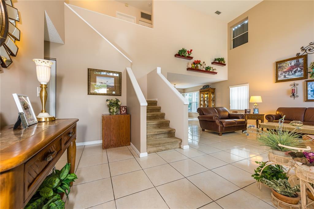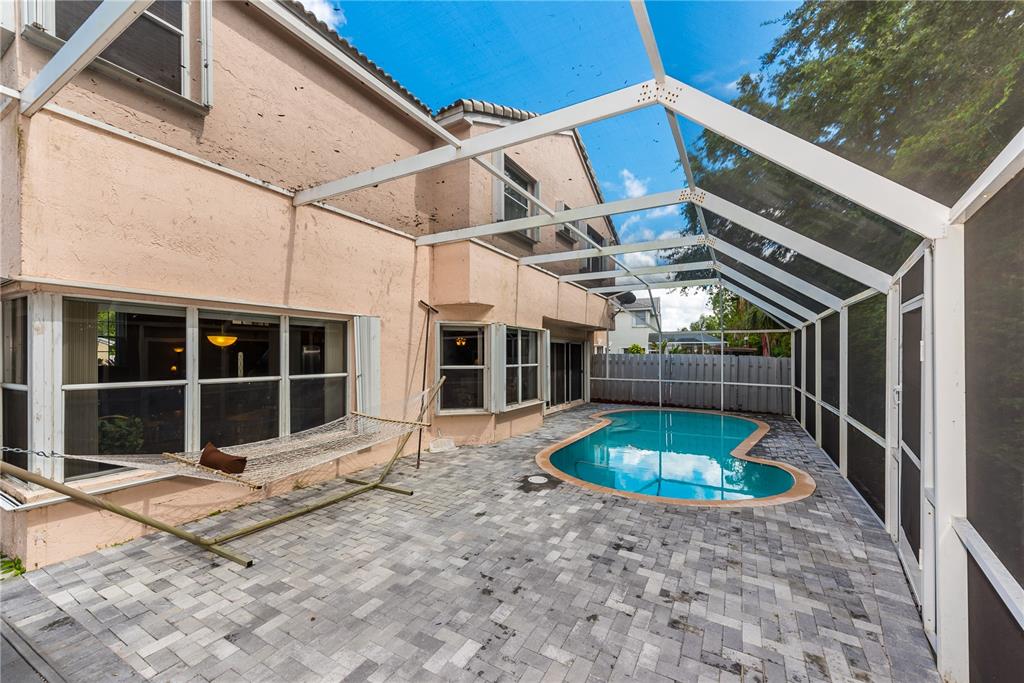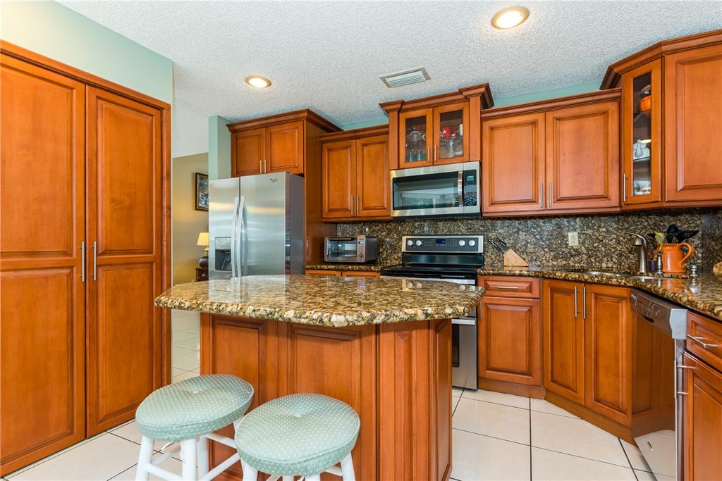 Look no further! This 4 bedroom has 3 full bathrooms, is spacious, well kept and has numerous upgrades. The huge master suite upstairs, has a king-sized bed with an oversized walk-in mirrored closet that opens into a spa-like bathroom, freshly tiled, with his & her wood w/granite sinks. All bedrooms have laminate flooring upstairs. Whether full sized or queen sized beds in the rooms, there is still plently of space for furniture and even excercise equipment! The kitchen has stainless steel appliances, granite counter tops, plus an island, wooden cabinets & pantry, opens into a breakfast nook, that overlooks a den and a screened expansive patio & deck area beside the water with lush vegetation. There is a full sized laundry room with washer & dryer, plus has accordian hurricane shutters!