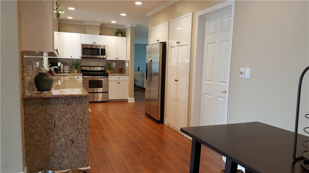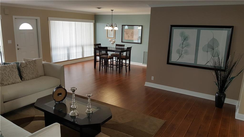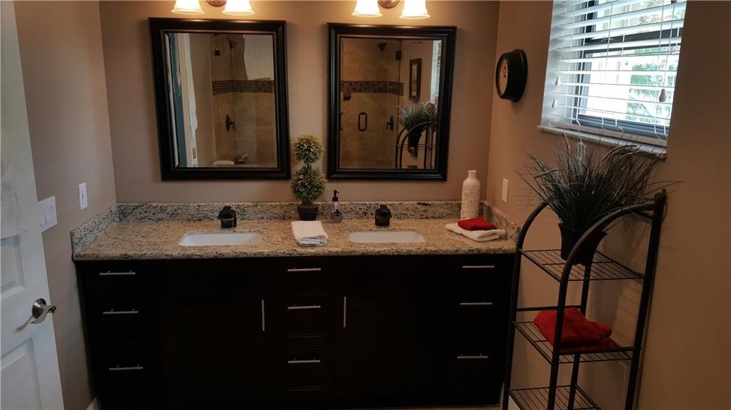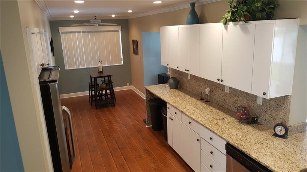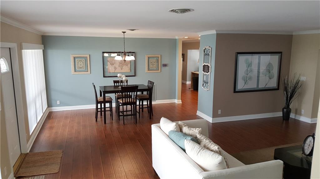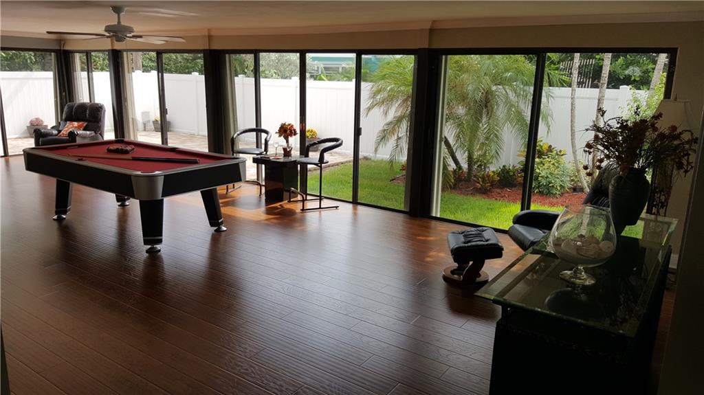 Elegantly updated 3/2 with open floor plan. Large master bath w/huge shower & large walk in closet. Kitchen has new recessed lighting, Granite, Stainless Steel appliances. New interior doors, crown molding, new wood flooring being installed, High efficiency AC. New 2nd Bath. Wall to wall windows in HUGE bonus/rec room/family room. Security system w/camera, phone apps for garage & A/C. Tropical landscaping. 2 Car Garage. Brick pavers driveway & back patio.