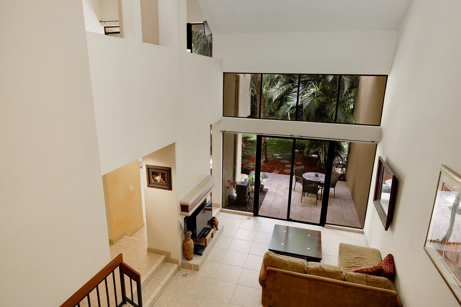 Two-Story Townhouse with 3BR & 2.5BA, in the hidden gem of East Boca's Land's End, a beautiful community of 94 homes. 2,093 living square feet, huge vaulted ceilings in every room, cozy wood burning fireplace, & sliding glass doors overlooking the tropical palm tree landscape with large zen-like patio and private backyard. The remodeled kitchen features stainless steel appliances and breakfast room with indoor-out living. Natural light abounds. Master with large tub and skylight, walk-in closet, double sinks, & balcony. Btwn BRRH and FAU, Land's End is a quiet townhouse community with resort-style secluded pool, hot tub, sauna, cabana bath. Steps from the Hospital, beaches, restaurants, in the heart of Boca Raton. Perfect for doctors, hospital, & FAU! A rated schools. Rare.