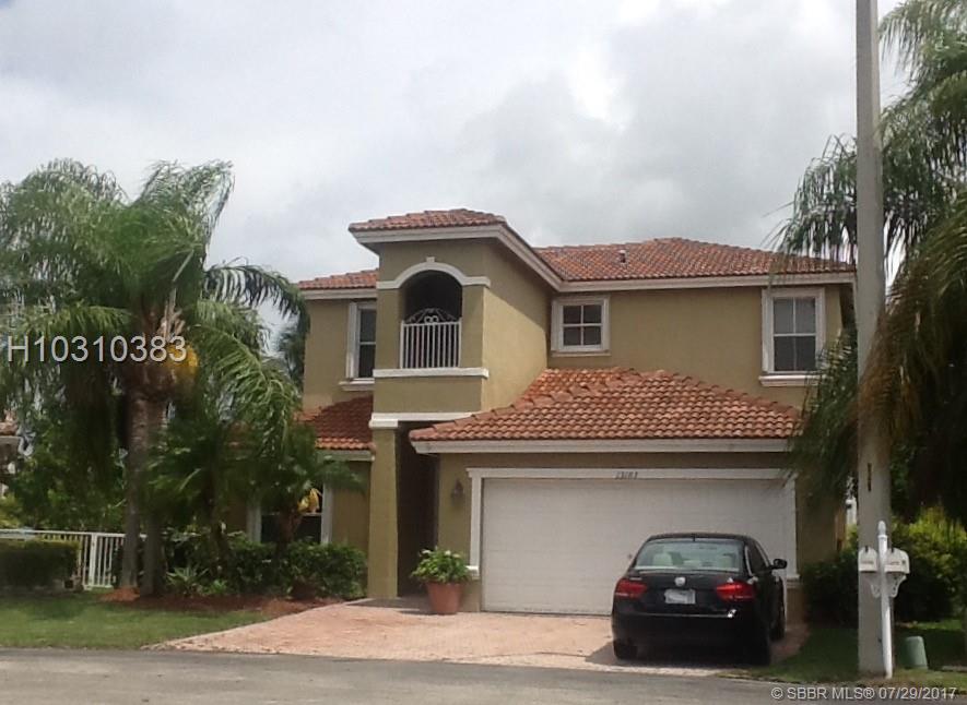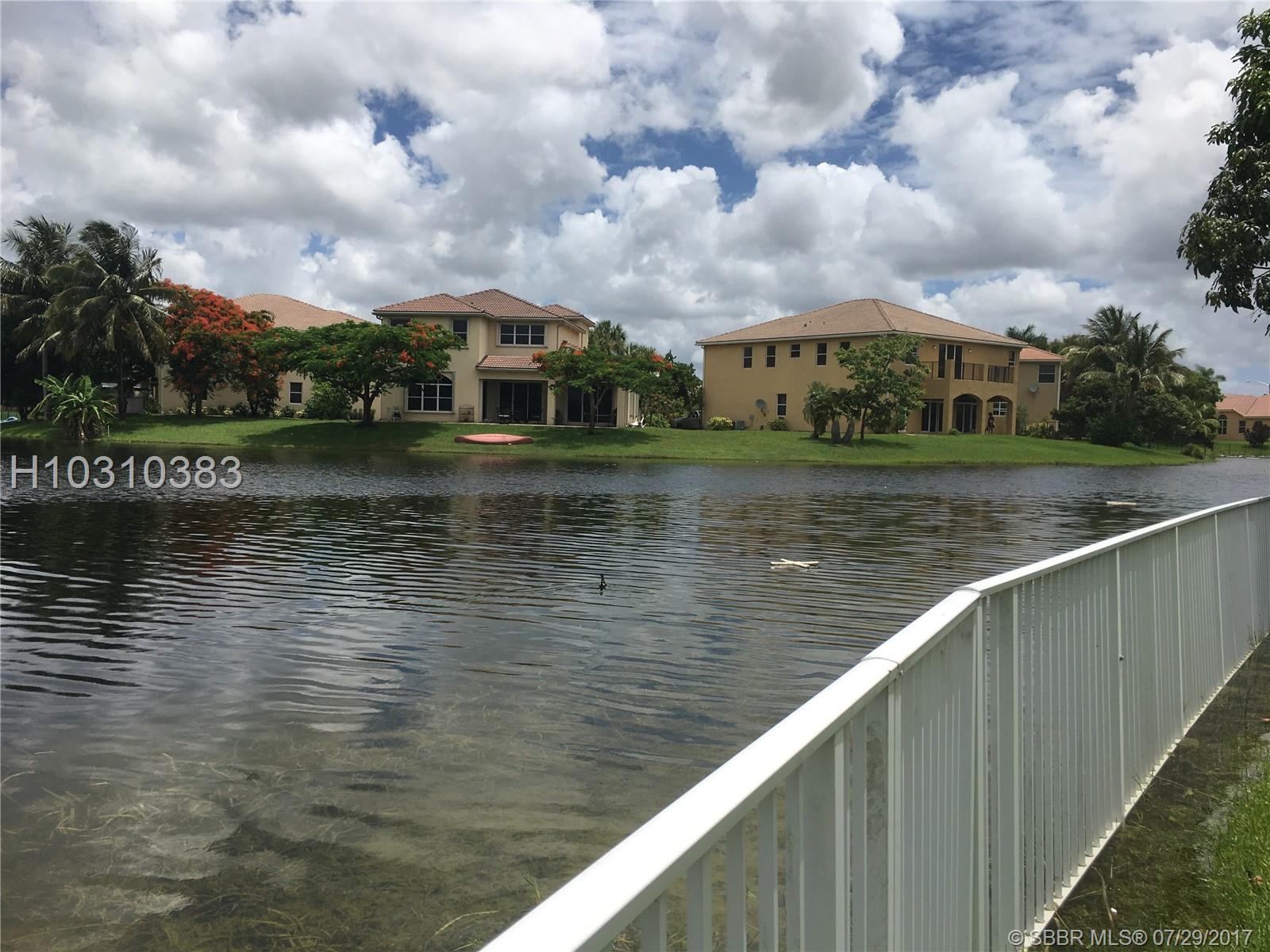 This Elegancia model Will NOT last!. Cul-de-sac, wide wraparound lake view, pool, covered patio PLUS additional patio with retractable awning. Large updated kitchen is the heart of this home and open spaces makes it perfect for entertaining or just relaxing; guest or in-laws bedroom and bathroom downstairs. Large and inviting master bedroom with sitting area and balcony with the view of the lake. Good size bedrooms. Accordion shutters, fruit trees. Close to restaurants, shopping, hospitals and major highways. Dogs may have a breed restriction as per Broward County. HOA includes common areas, community pool and gate security.