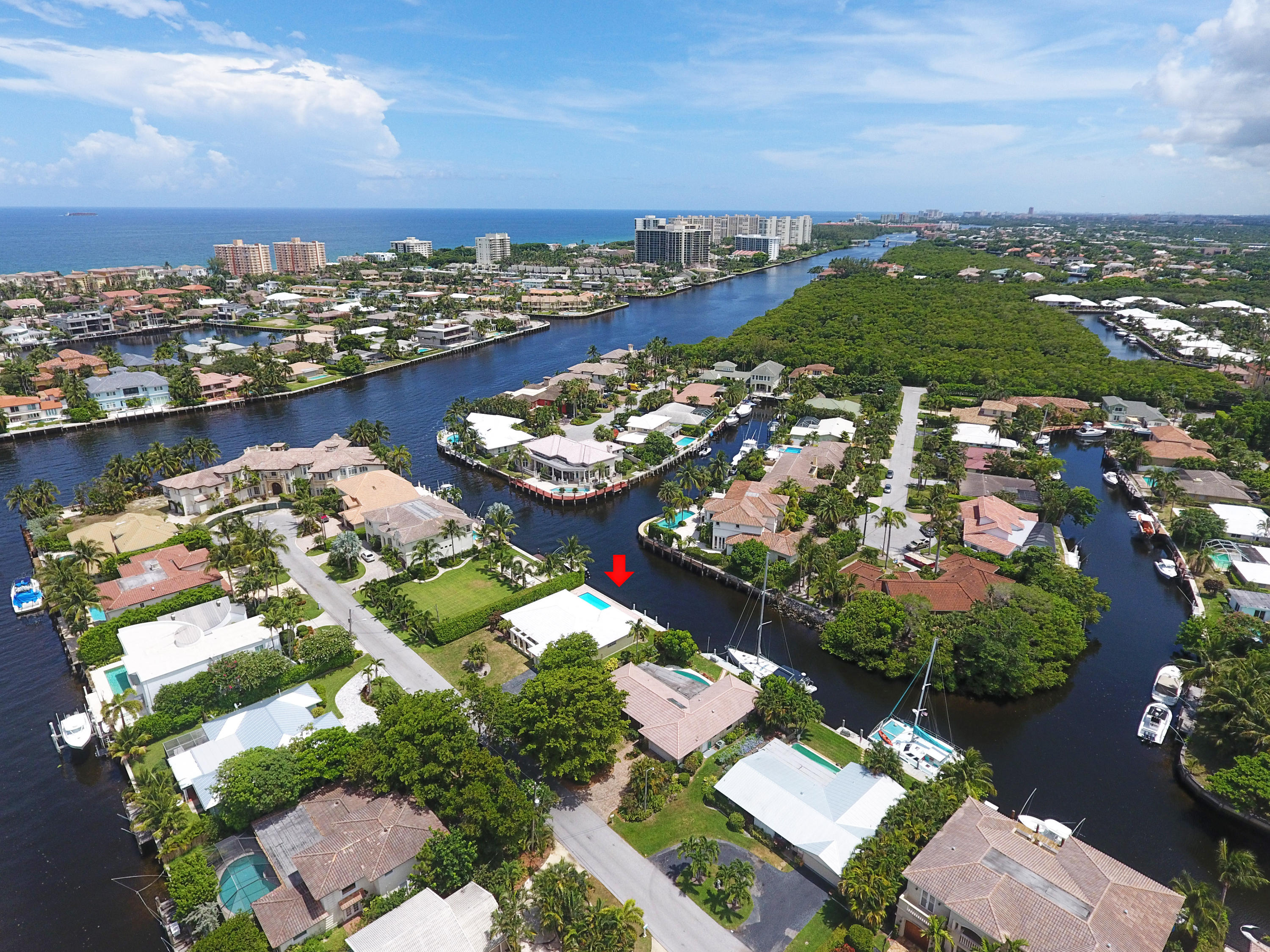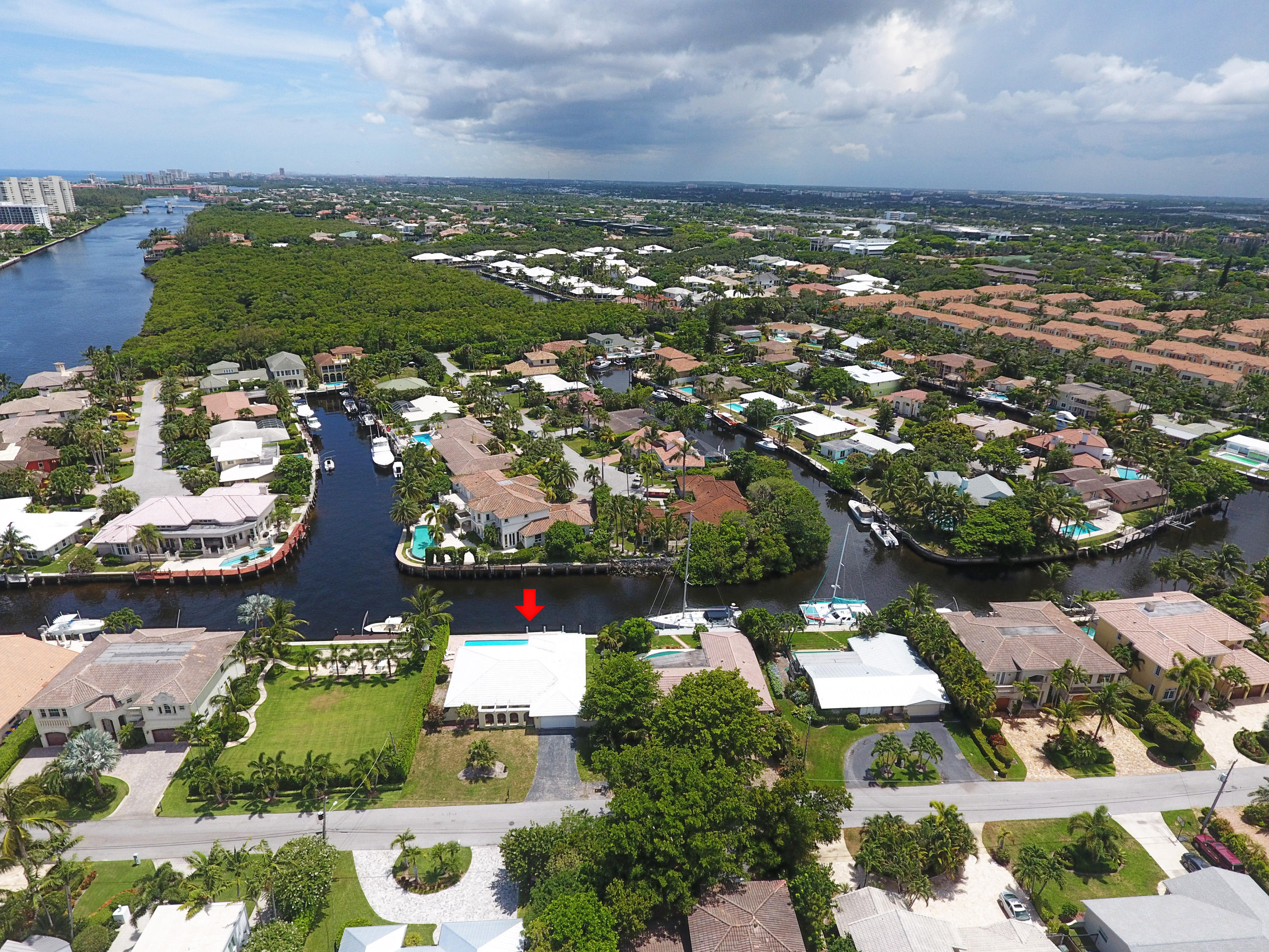 LOCATION! Deepwater home just 4 lots from intracoastal, South facing backyard, no direct facing neighbors, close to a canal T intersection for easy turning & navigability of larger boats. House is fairly original & needs renovation or choose to tear down & build your dream house on a fabulous lot. Floor plan is still relevant w/open design, split bedroom plan, central kitchen w/large island, large covered, screened patio (24X12) under pitched roof (no flat roof). This is a highly desirable location and an incredible opportunity to live on deepwater in Boca Raton. Lowest priced Southern exposure home in the area, priced to sell