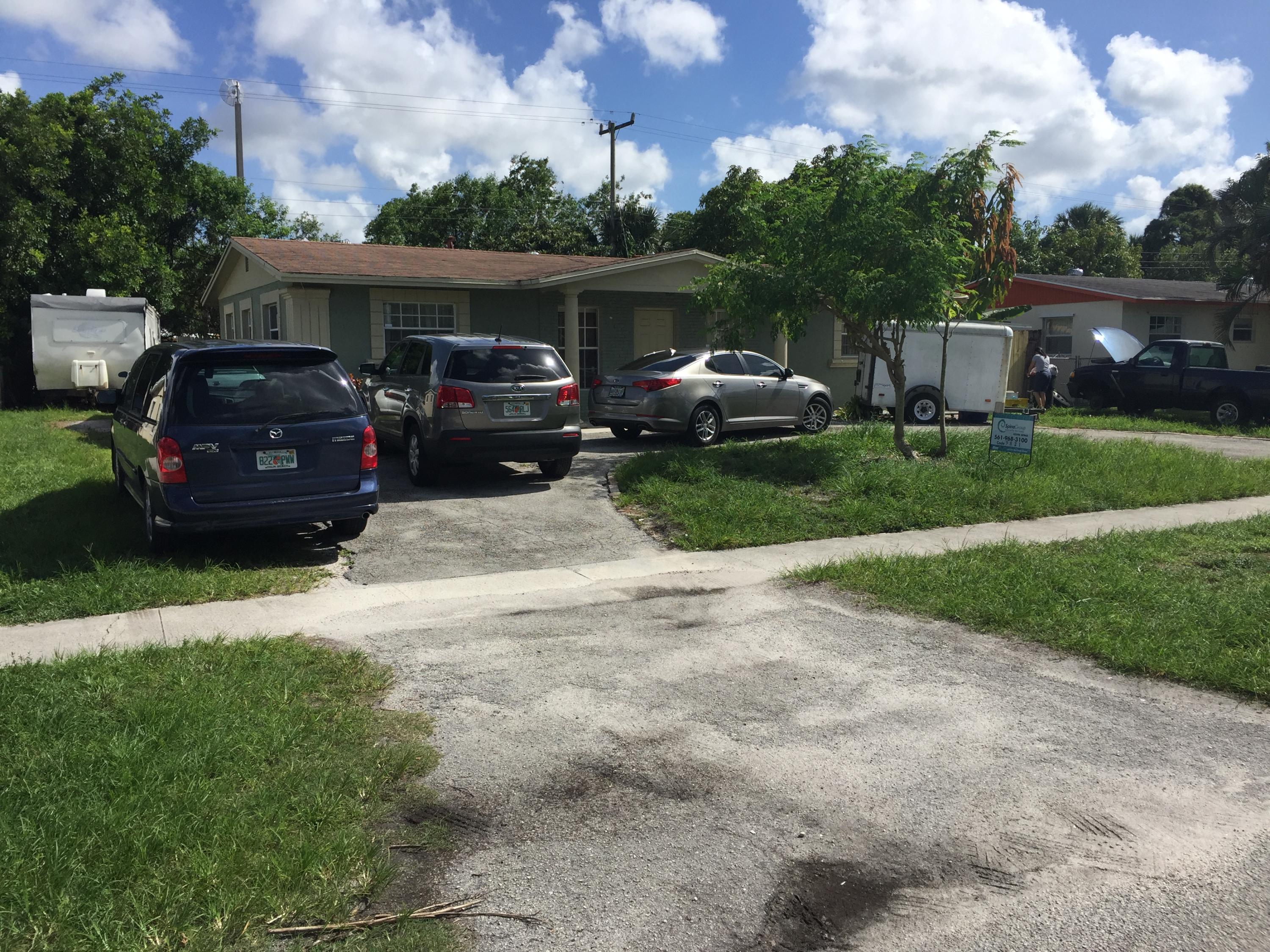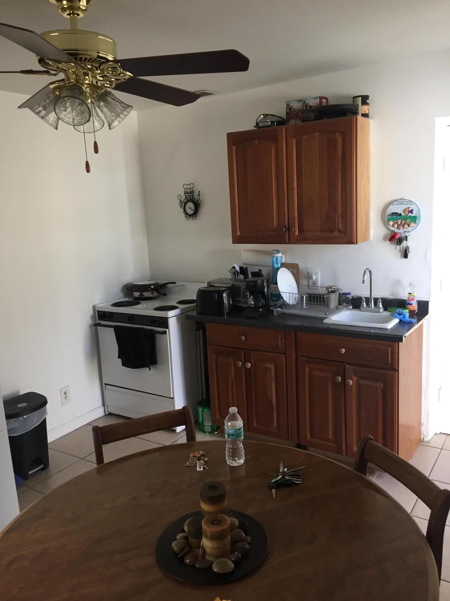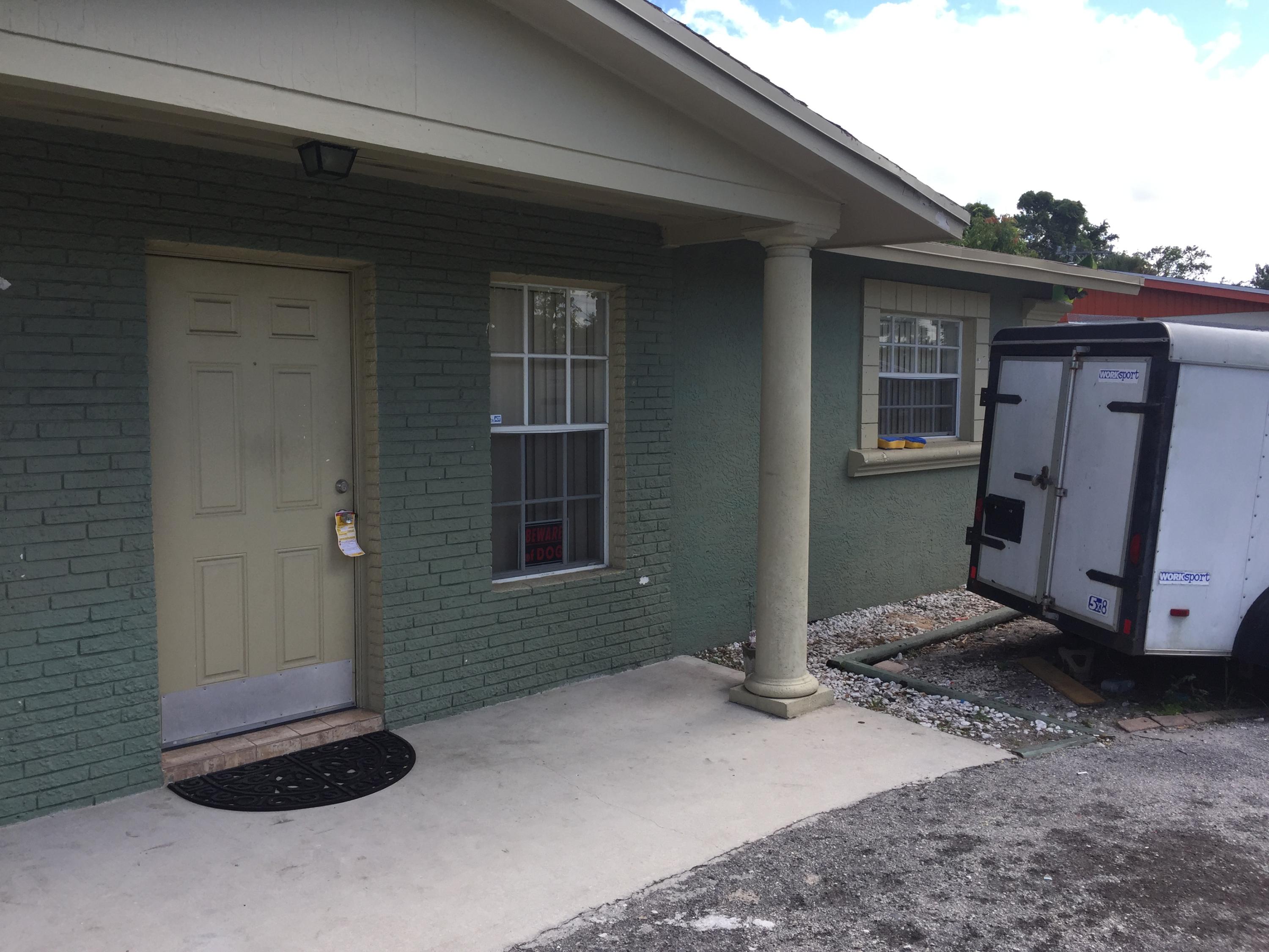 Great opportunity to own a 3 bed, 2 bath main home with an attached 1 bed, 1 bath efficiency. This property features a fenced back yard with storage shed and a circular driveway. Main house has tile floors throughout. The kitchen has white cabinetry, laminate counters, tile backsplash, and a full complement of appliances. Master bedroom has an attached bath with tub/shower combo and single vanity with tile countertops. 2 additional bedrooms share a guest bath with a shower and single vanity. Guest efficiency has a separate entrance, 1 bedroom, kitchenette, and 1 bath with a shower and single vanity. The property currently has tenants in place. This is a great income producing opportunity or a great family home with in-law suite.