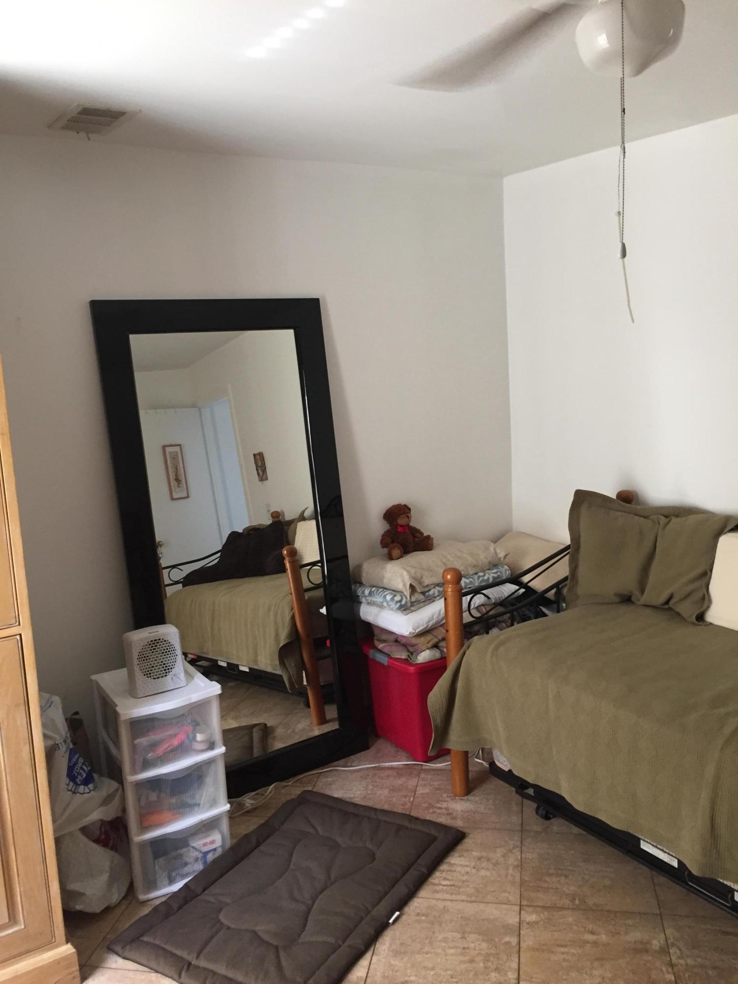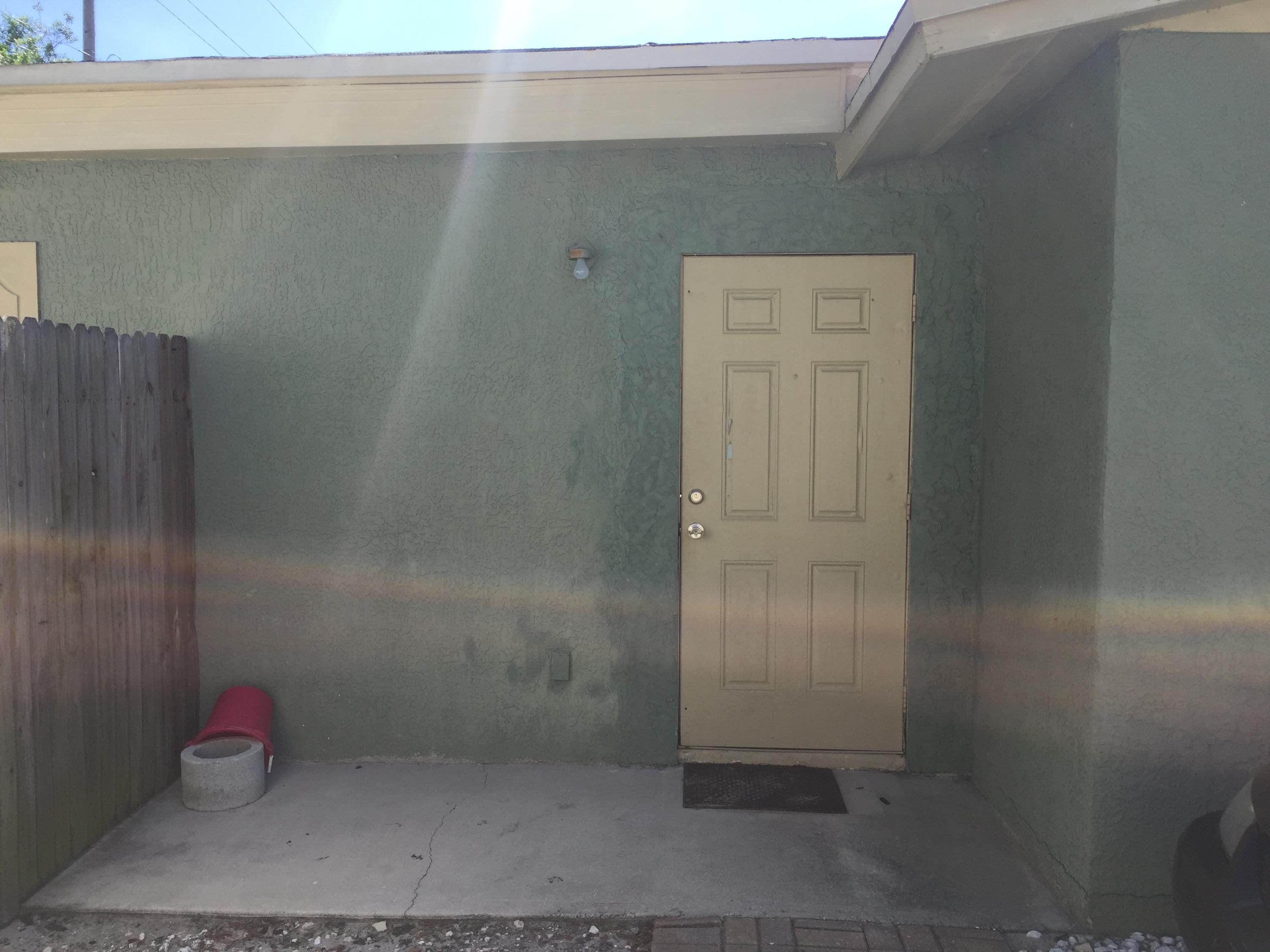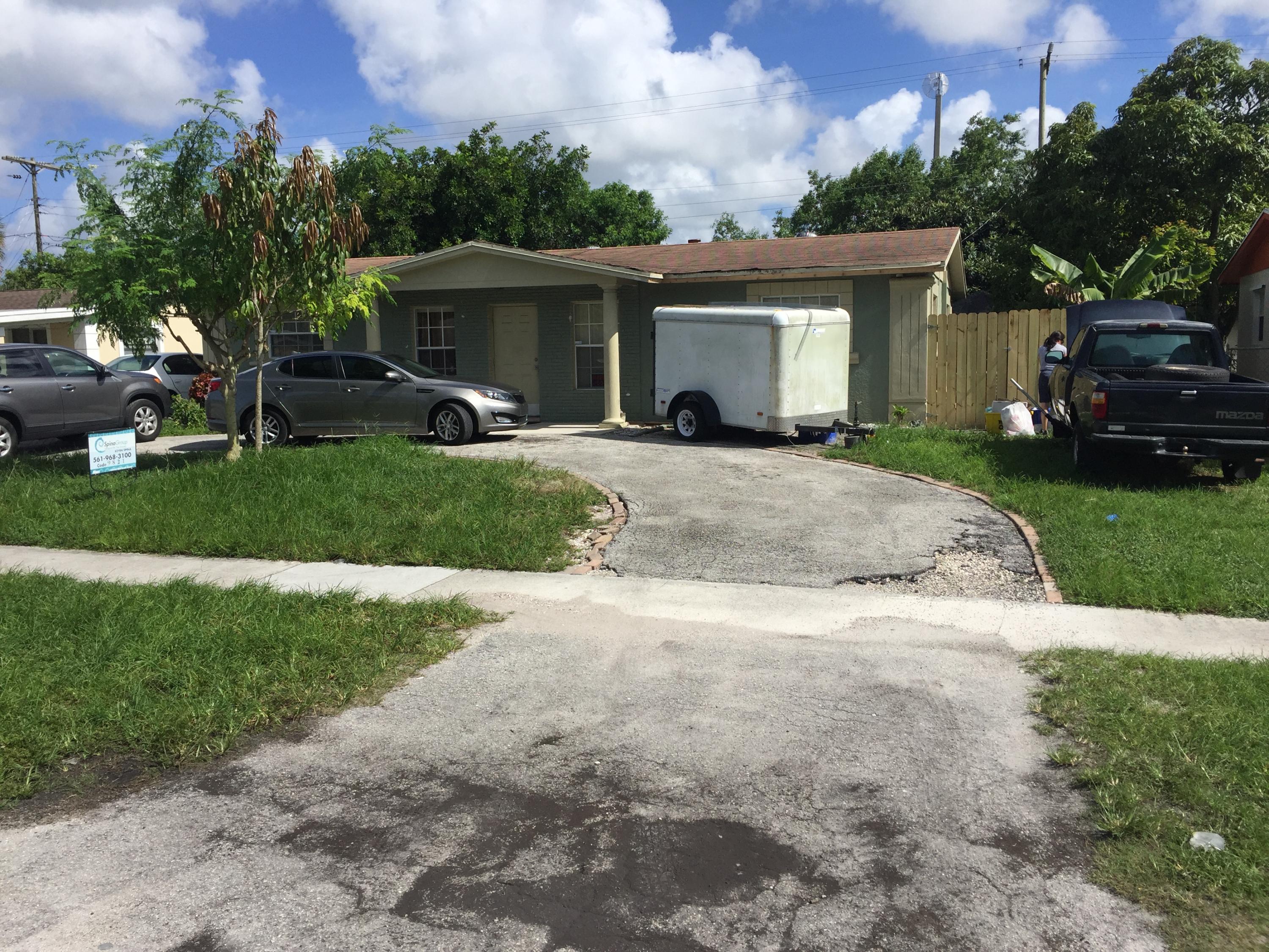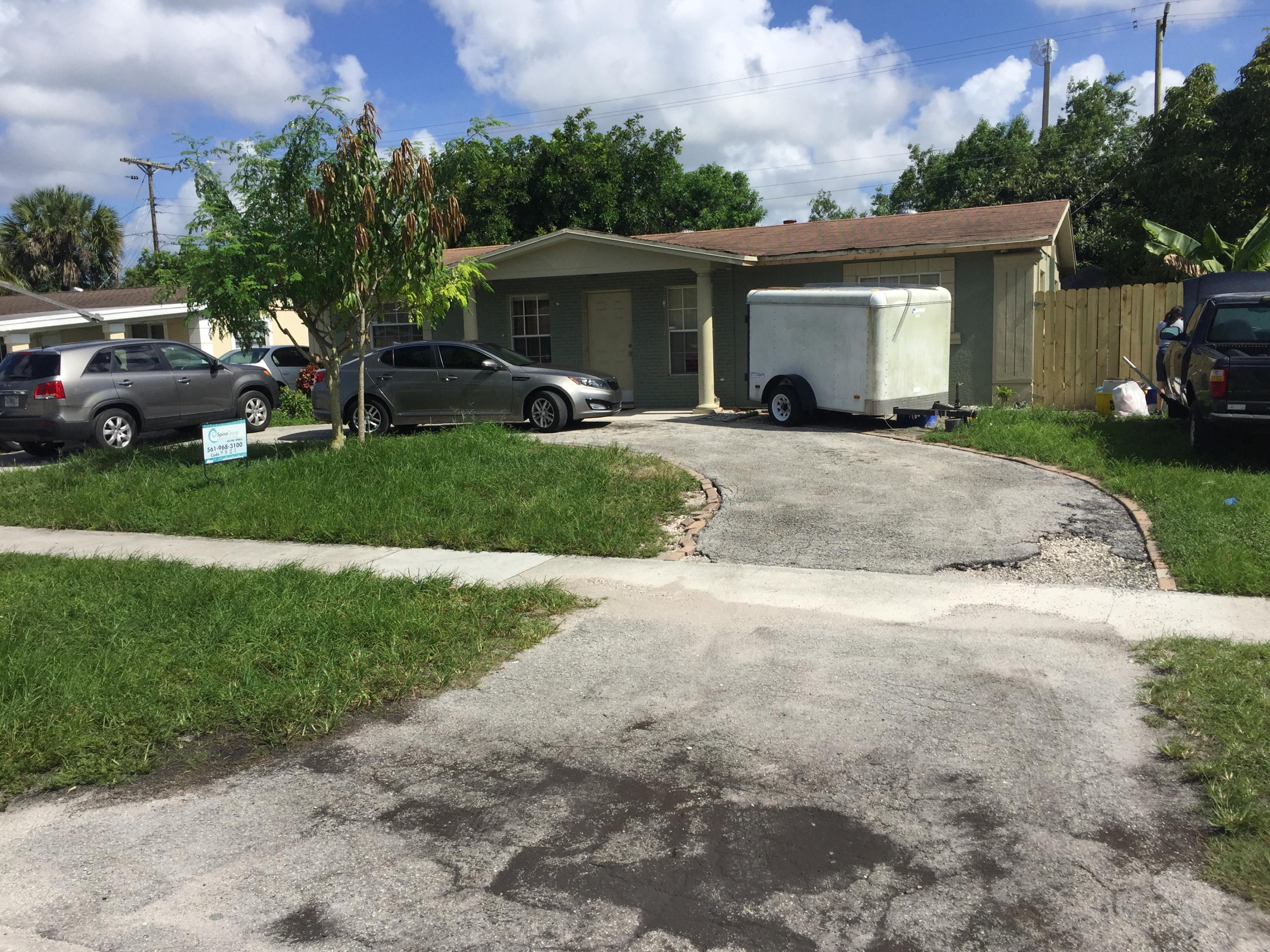 Great opportunity to own a 3 bed, 2 bath main home with an attached 1 bed, 1 bath efficiency. This property features a fenced back yard with storage shed and a circular driveway. Main house has tile floors throughout. The kitchen has white cabinetry, laminate counters, tile backsplash, and a full complement of appliances. Master bedroom has an attached bath with tub/shower combo and single vanity with tile countertops. 2 additional bedrooms share a guest bath with a shower and single vanity. Guest efficiency has a separate entrance, 1 bedroom, kitchenette, and 1 bath with a shower and single vanity. The property currently has tenants in place. This is a great income producing opportunity or a great family home with in-law suite.