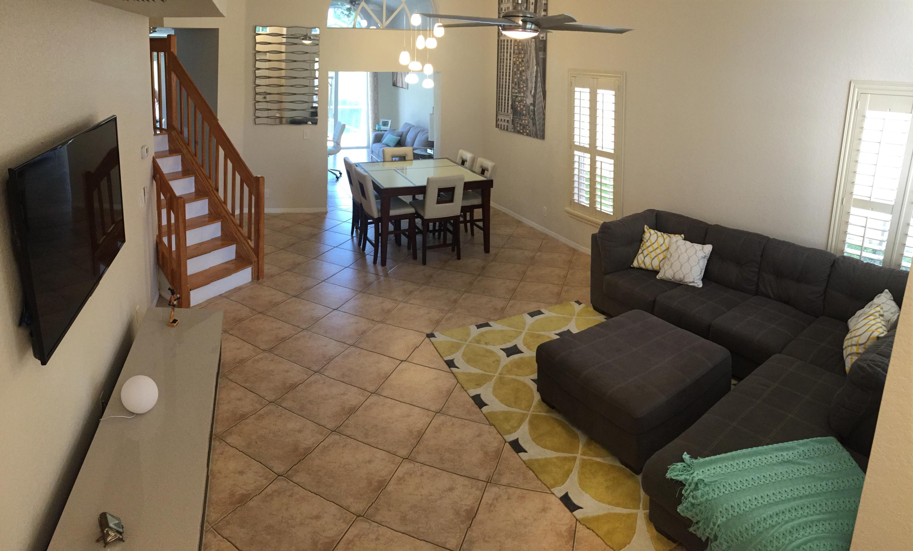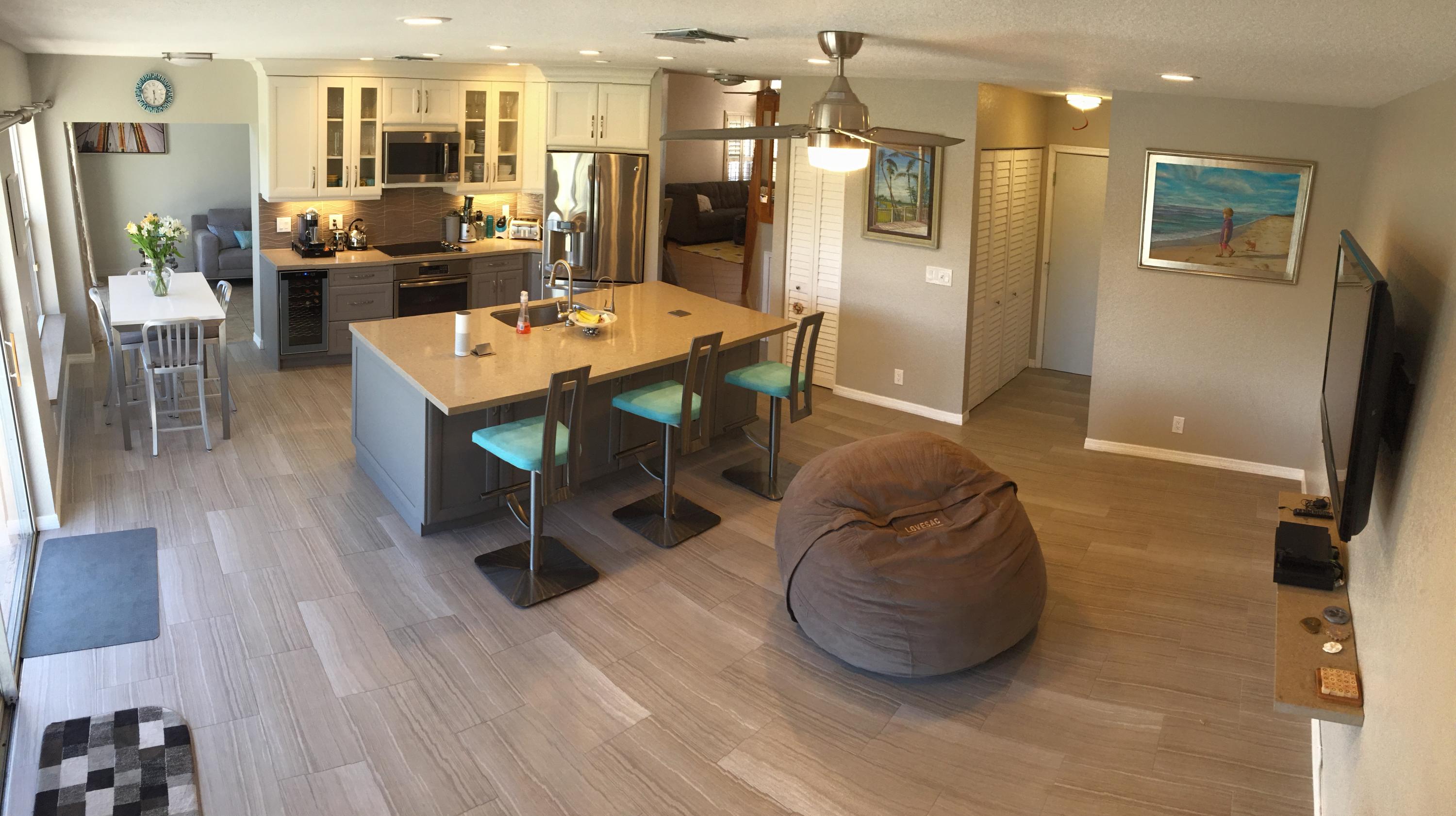 Light and brightNewly painted interior50k clean and modern kitchen/new appliancesWine chillerGlass backsplash with back lightingItalian porcelain tileExtra wide islandLarge screened in patio with full lake viewNew A/CMove in readyFurniture negotiableExcludes foyer and dining room chandeliers