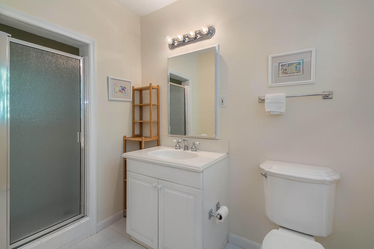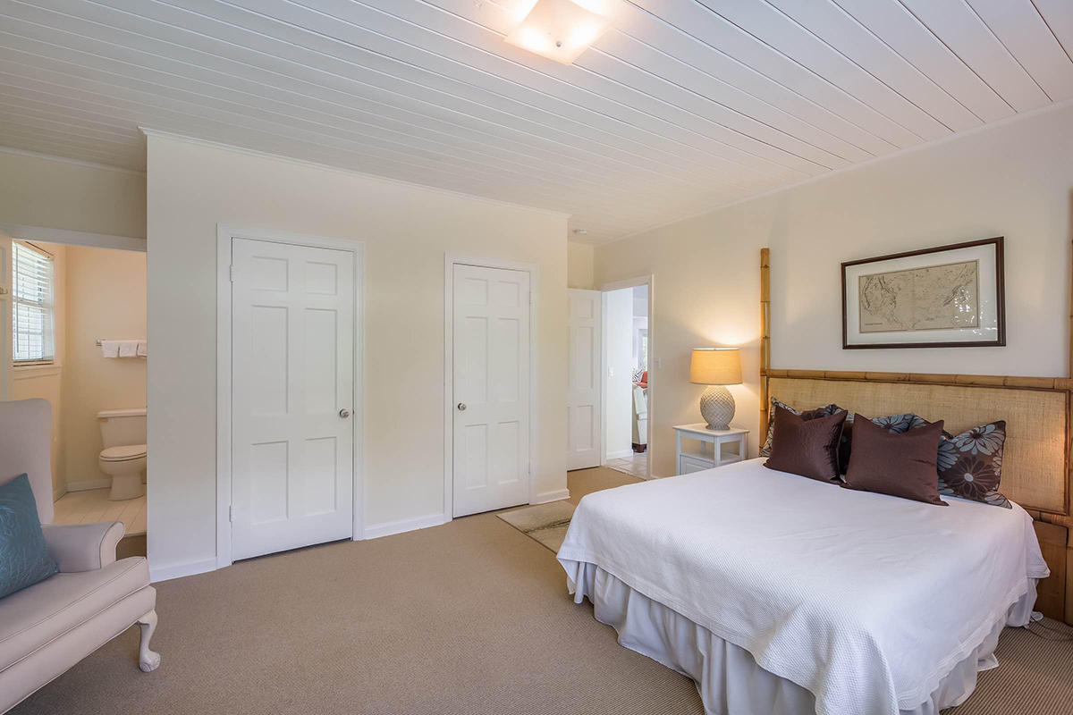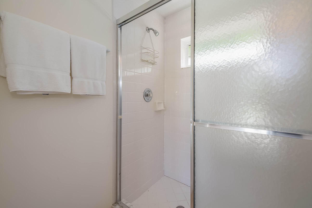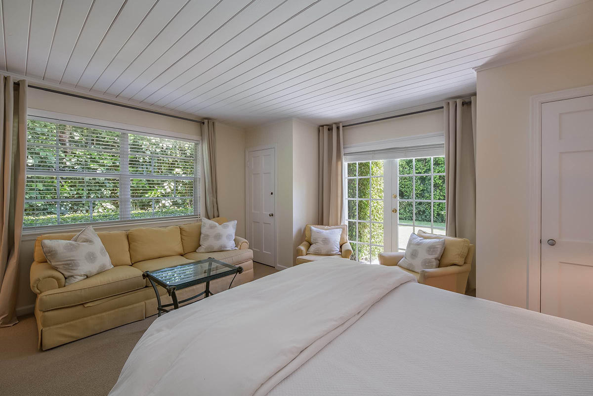 This charming three bedroom three bathroom Northend home is perfectly situated on a large lot. Enter through the foyer into an open living area with vaulted ceilings and views of pool and yard. The spacious living room opens into the family/sun room with three sets of French doors that allow natural light to flood in. Desirable split floorplan with two master suites. Two bedroom, one bath guest house off the sparkling pool. Large lot with good elevation and lush landscaping surrounding the property for privacy. Great North End street with access to beach and lake trail.
