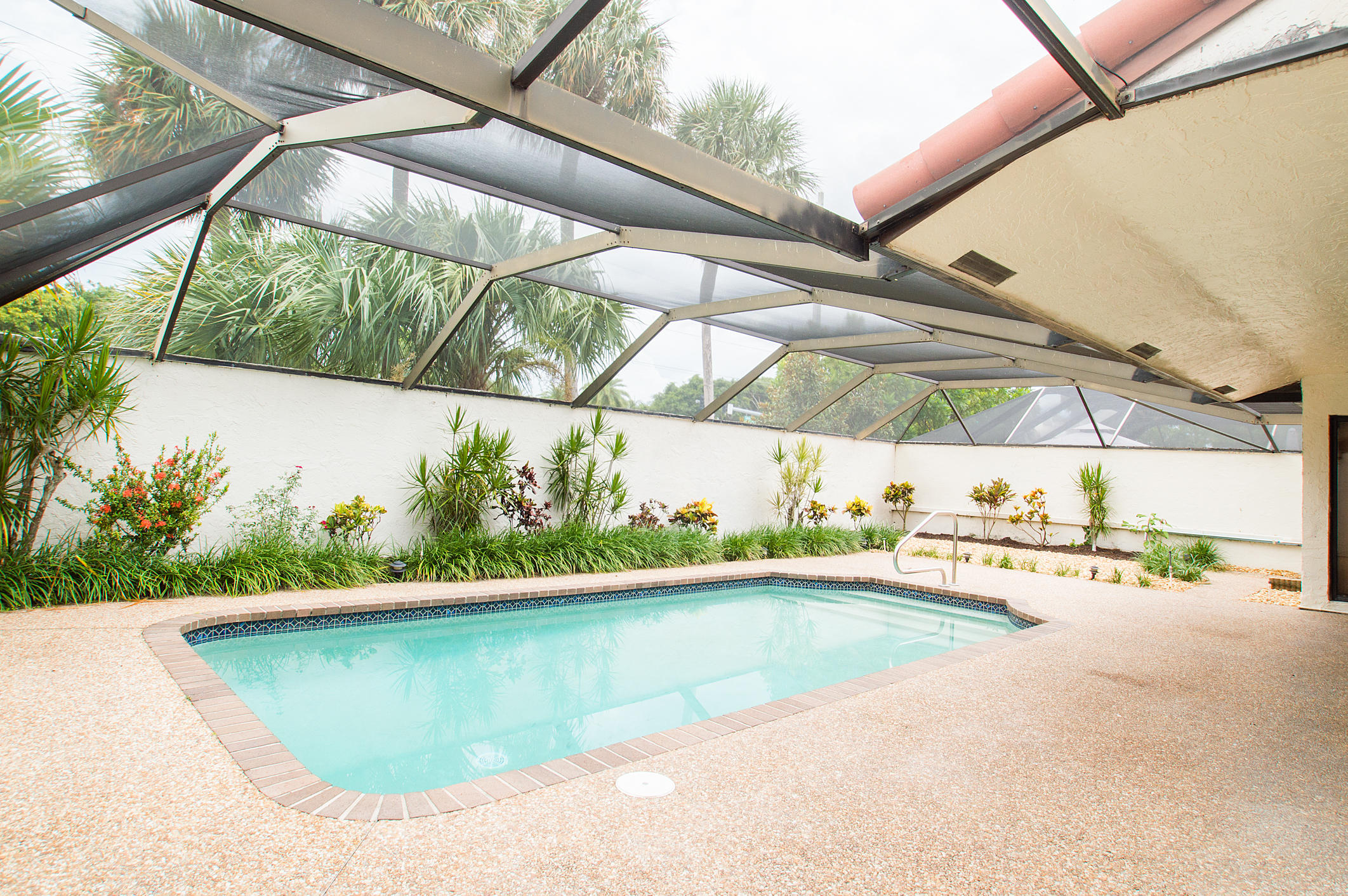 Features an open floor plan, new Porcelain floor (2015) throughout the home. Living room with Vaulted Ceiling and a lot of natural light. Wood burning coral fireplace, clerestory windows. Formal dining room and updated eat in kitchen with new granite counter-top and appliances (2016). Screened in backyard with a private pool and outside shower. Split Bedroom plan (over-sized) with large closets. Mop sink and refrigerator in the garage . Central Station Alarm system included with Hoa. New AC and water heater (2012), new kitchen appliances(2016), new roof (2012) and home is freshly painted. Top rated school district, central location convenient to major roads Town Center mall and restaurants , pet friendly, ready to move in.