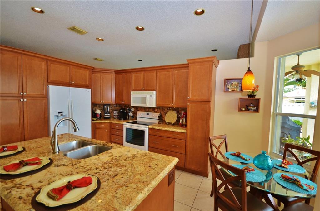 Enter this man-gated neighborhood, and it will immediately feel "like home". Light & Bright entry/ Living room extend to view the inviting pool & covered patio upgrade. A gorgeous kitchen with the finest cabinetry & Granite, a spacious family room & sunny Breakfast area, will have you say..."wow"!! Master Bedroom and luxurious bath, with frameless shower door is impeccable. Bedrooms have upgraded wood-like flooring & custom closets. 2nd bath has been renovated to a delightful modern decor. Great schools