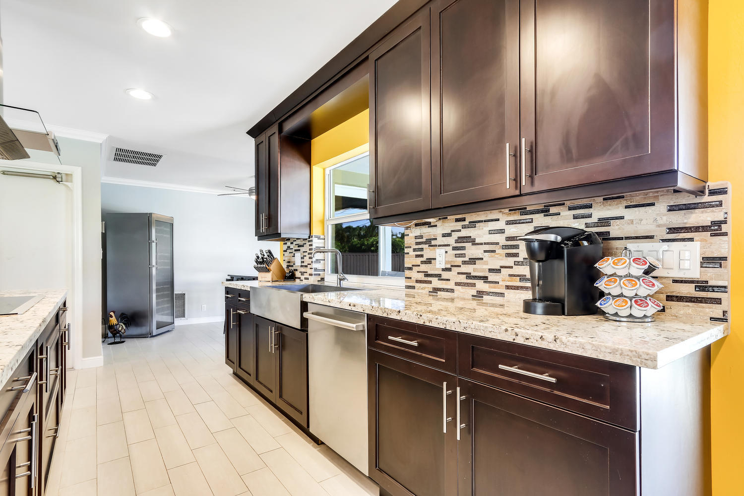 Renovated with no expense spared! All impact windows and doors including custom Mahogany double front doors - Walk in to coveted open floor plan, split bedrooms and Italian tile floors - Dream kitchen with oversized island, Sub Zero refrigerator, Farm sink, pendant lighting, SS appliances, a must see! Renovated and enlarged master suite features walk in closet, pool view, beautifully updated bath has double sinks, and seamless glass plus rainfall shower - 4th BR being used as inside laundry room (washer dryer excluded)- washer/dryer easily re-installed back into spacious garage! - Private, fully fenced yard with double gate perfect for boat storage, all new sod - Open pool for true Florida living! Trane A/C 2014, new duct work 2016 - New electrical panel 2016 - Great schools- all A-rated!