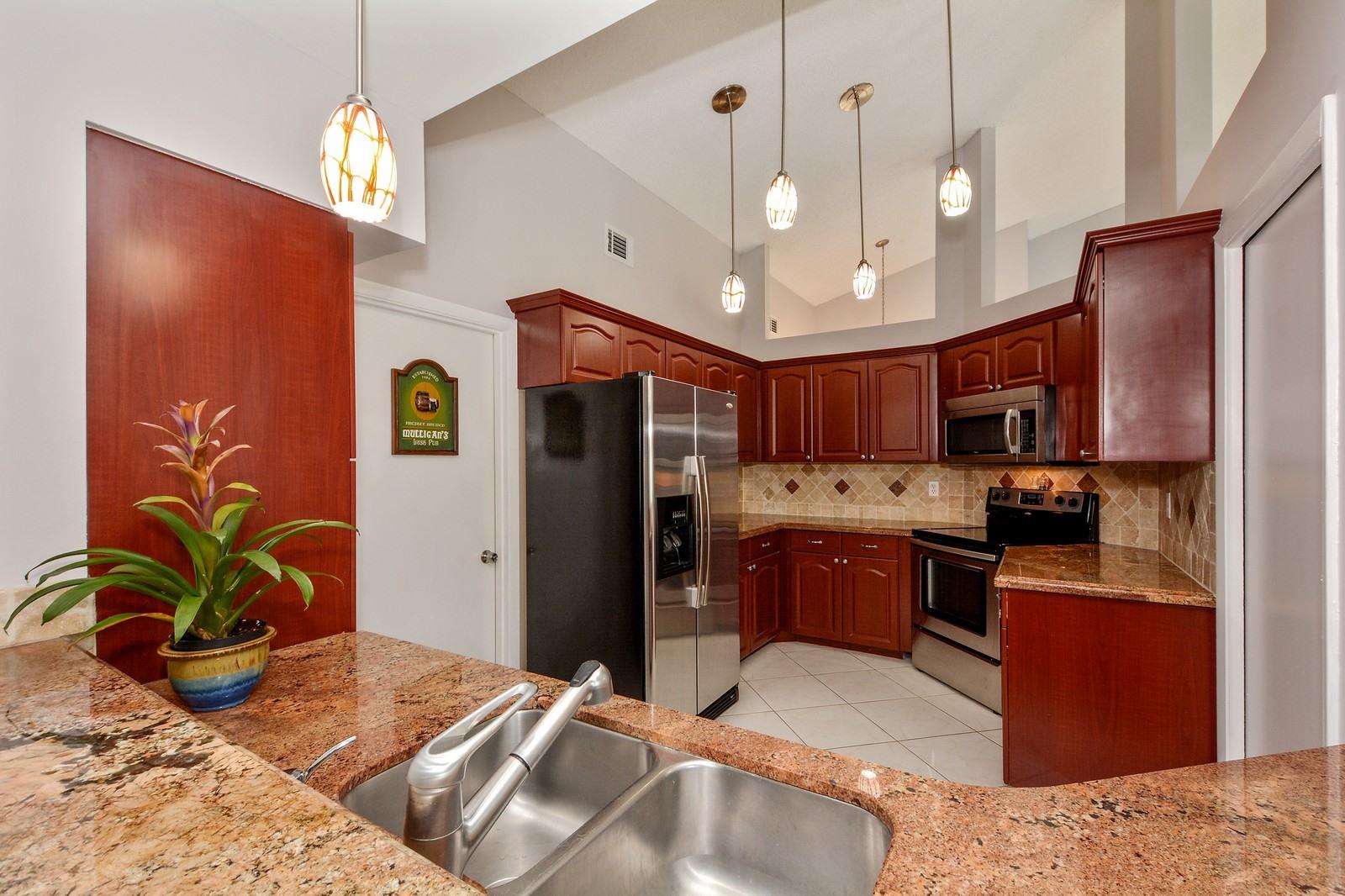 Impeccable Turn-key, renovated, move-in ready, lakefront house. Split floor plan. 4 designer remodeled bedrooms, 2 full bathrooms. Roof replaced 2006. Remodeled kitchen w/granite counter tops and 3 years old S/S appliances. Complete A/C replaced 2010, Trane Dual stage, including complete new ducts and wiring. Whole house PGT impact and energy efficient windows, doors and garage door. Wood and tiled floors, no carpet anywhere. Crown moldings. Gorgeous, renovated, Spa like Master bathroom w/jetted and lighted tub. Private, fenced-in backyard. Screened-in private pool w/newly painted pool deck and child fence. Exterior painted 2015. Exterior surveillance camera system accessible from your phone. Garage door and A/C thermostat also App controllable. A rated schools and very low HOA fees.