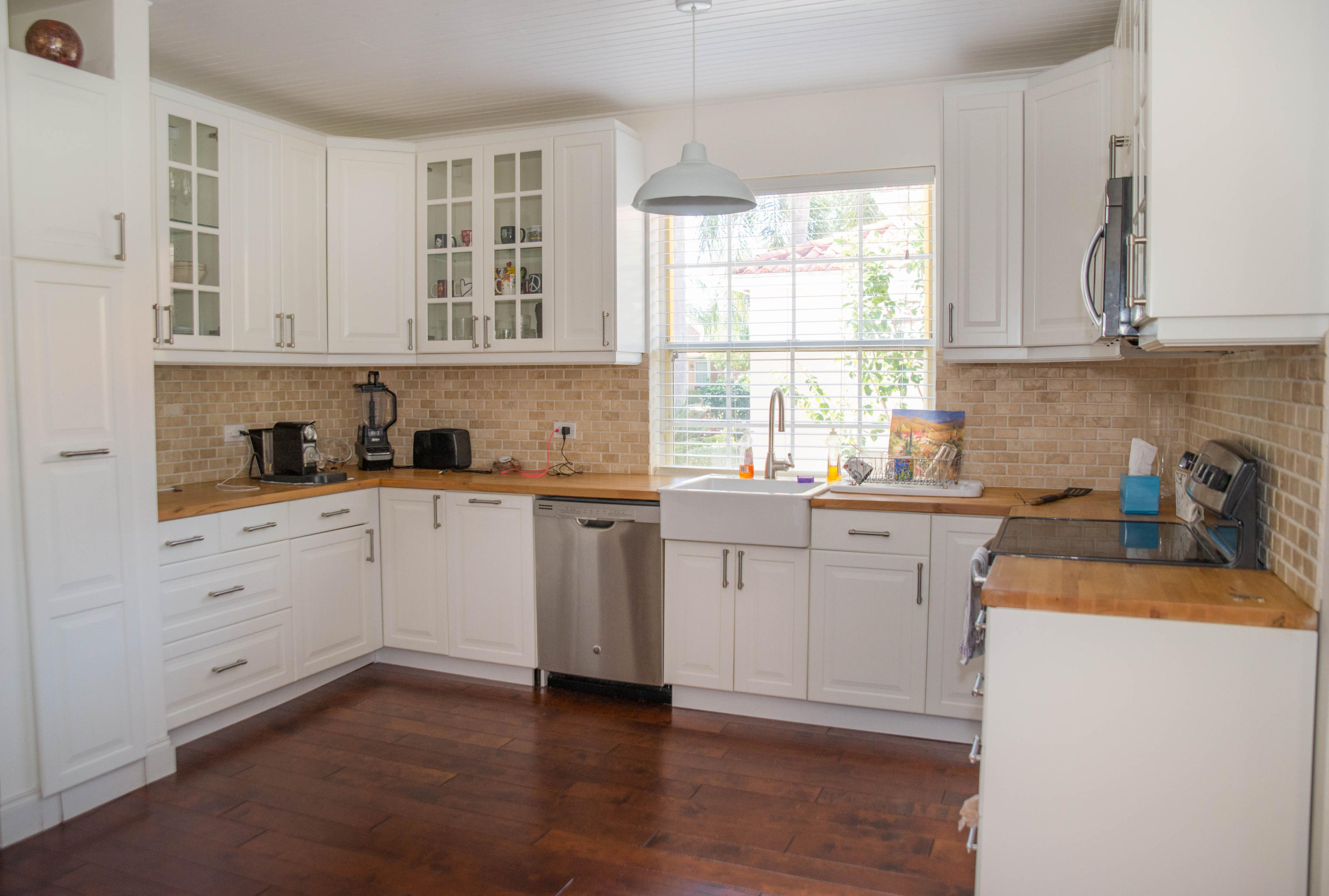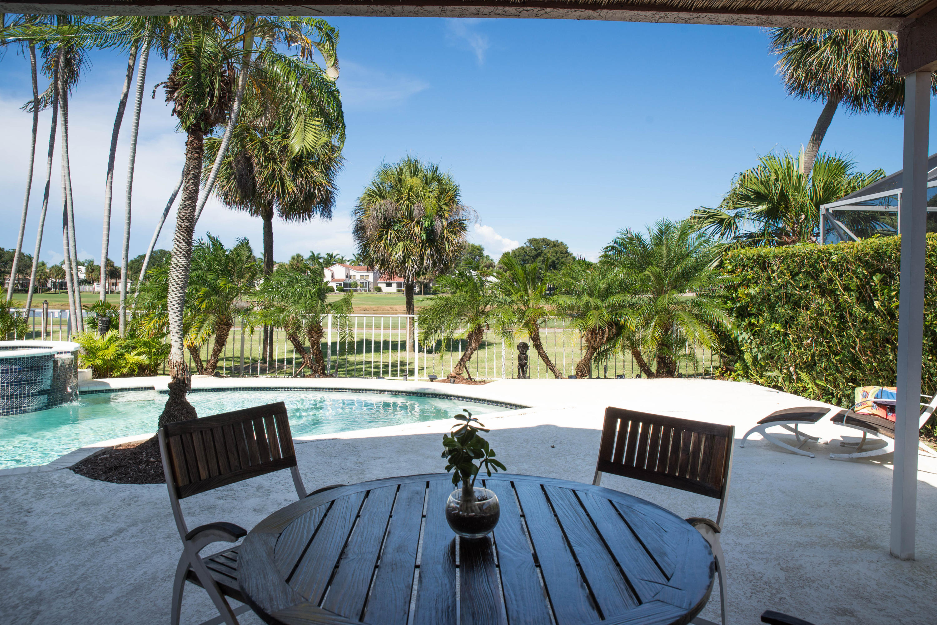 Completely renovated home in Boca Country Club! Beautiful one story 2 bedroom 2 bath pool home with golf and lake views. This immaculate home features a spacious open floor plan and no detail has been spared. The kitchen has a crisp clean feel with beautiful white cabinetry, butcher block counters and stainless steel appliances. The dining and living area are open to each other and a great space for entertaining. The home features vaulted ceilings, beautiful hand scraped Bella Serra wood floors, crown molding and wood paneled ceilings throughout. The master features California closets, a large en suite with claw foot tub, dual vanities and separate shower. The back yard is a tropical paradise with both a covered patio and open patio areas with free form pool and spa.