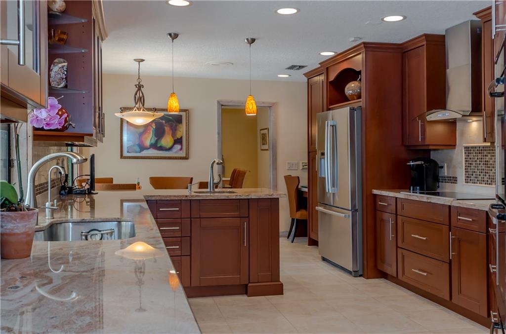 Spectacular family/entertaining home on cul-de-sac w/ a huge yard and pool overlooking the water! Light and bright w/ almost 3,400 sq ft of living area! A chef's dream of a kitchen includes all new stainless steel Bosch appliances, double ovens, wine refrigerator, granite counters, and more! Formal living w/ vaulted ceilings and formal dining!Huge family room w/ built-ins and room for a pool table! Split bedrooms, closets galore, oversized garage w/ new impact garage door, and hurricane impact windows