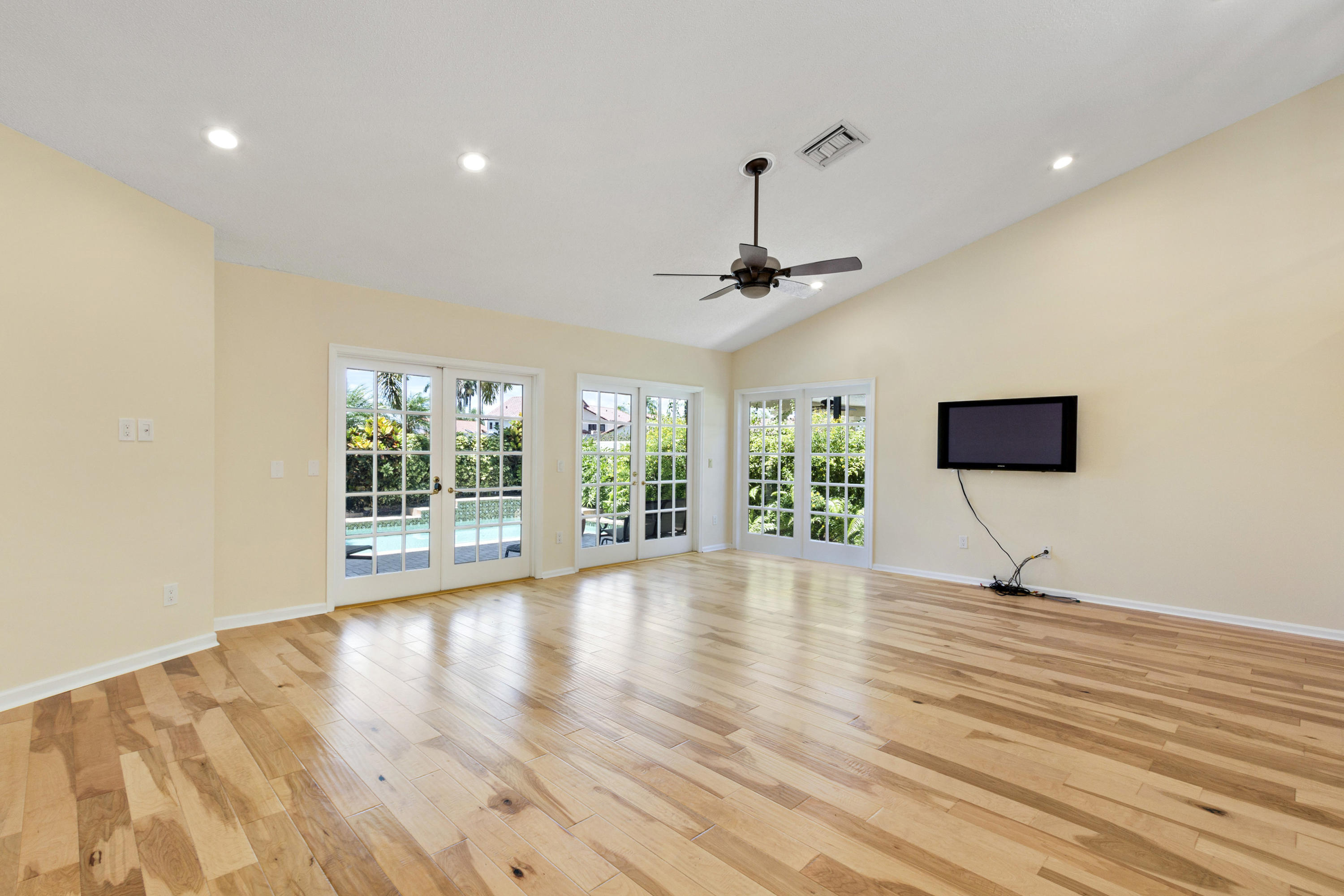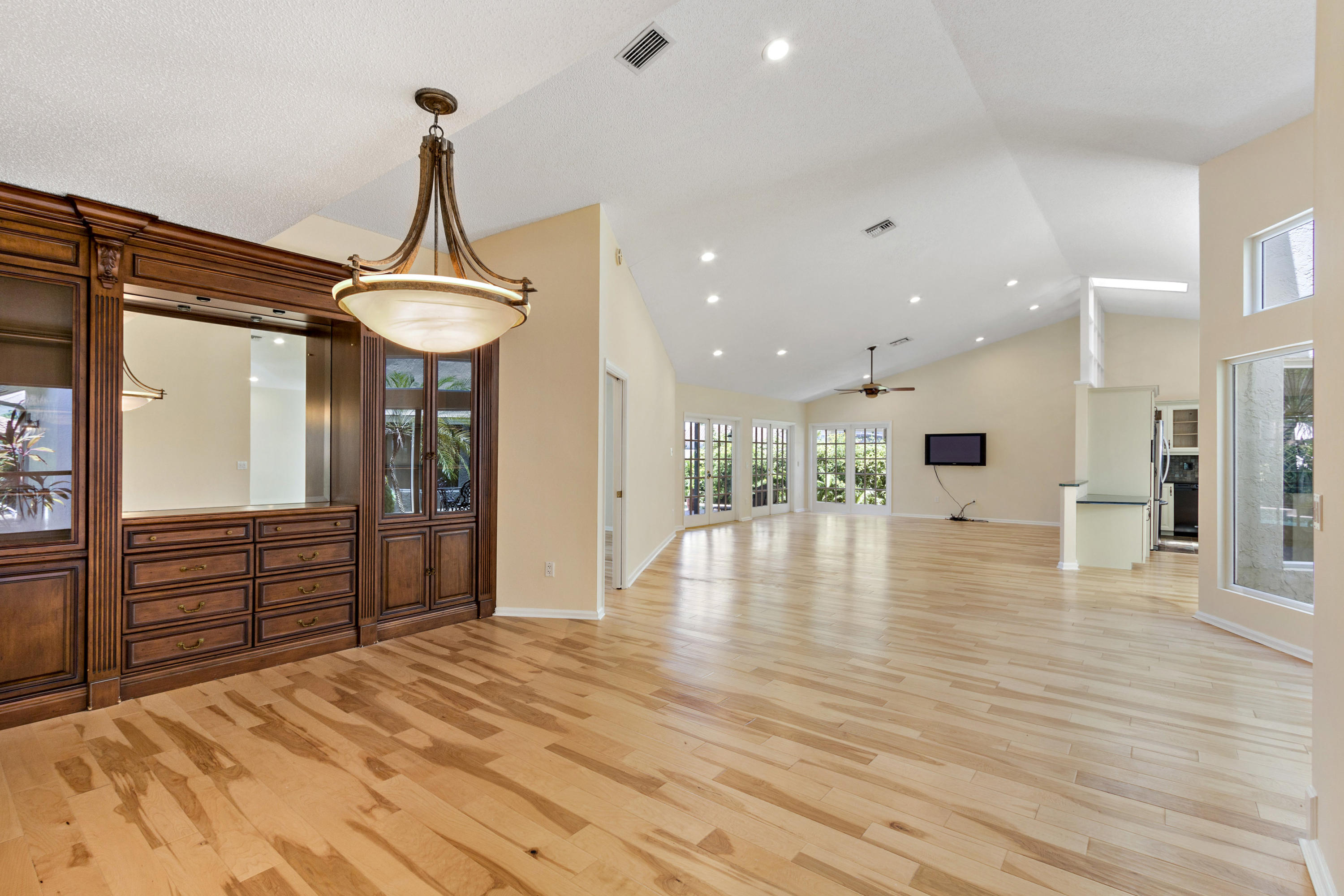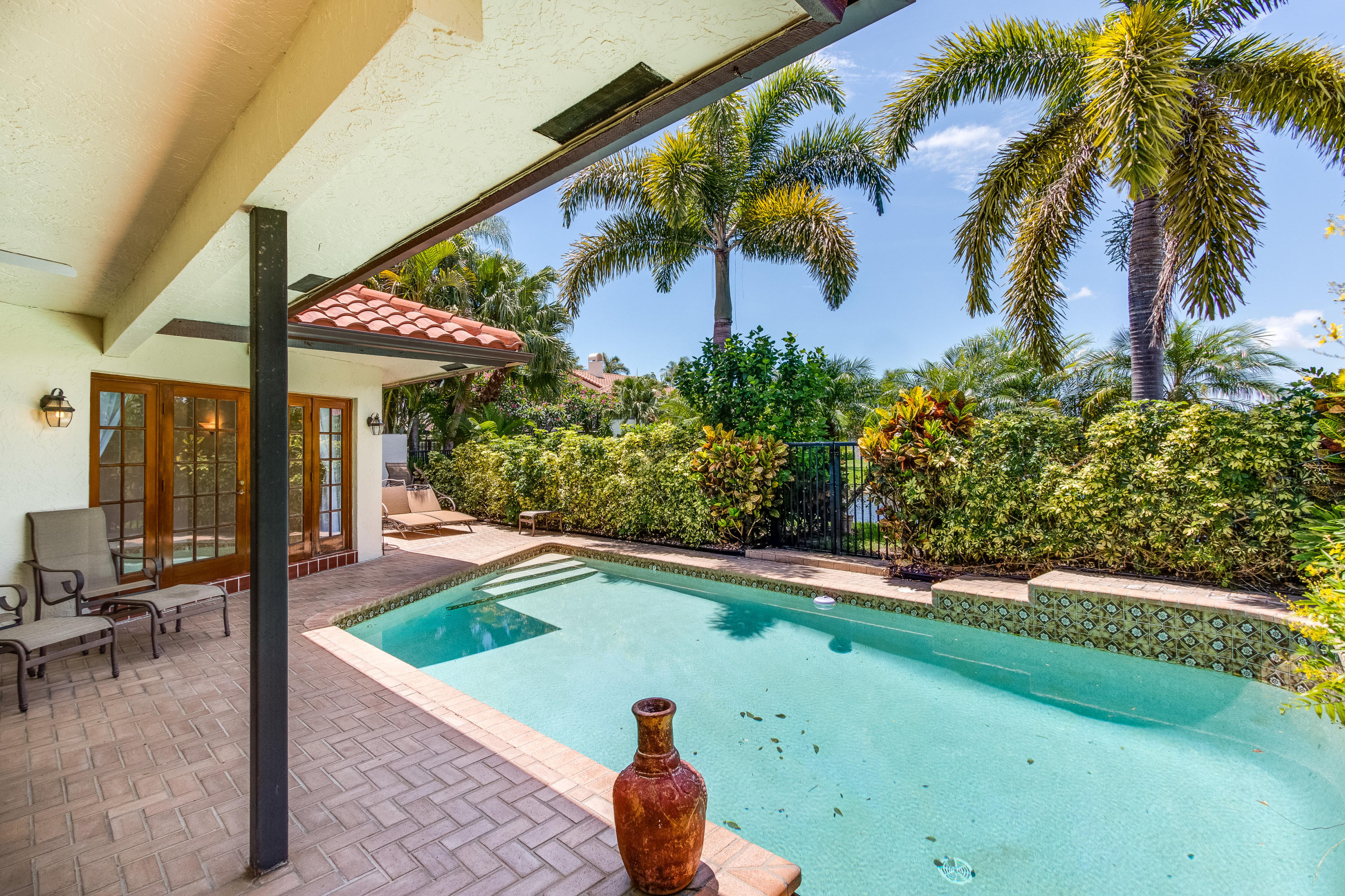 Esplanada is a subdivision of Boca Pointe. A NON MANDATORY Country Club. This custom Estrella model is unique and magnificent in every way. Enter through the Wrought Iron Gates and walk into the Lush Landscaping.This Single Story Pool Home with three Bedrooms, 2 1/2 bathrooms has been Meticulously Maintained and Completely Renovated.Stunning Pecan Wood Floors in the Great Room, Dining Room & Master Bedroom.The Custom Architecture, and use of High End Quality Materials speak for themselves. The Atrium in the Foyer is Spectacular for indoor & outdoor space.Finally, relax in your own private sparkling pool overlooking the long lake view. Truly Paradise!