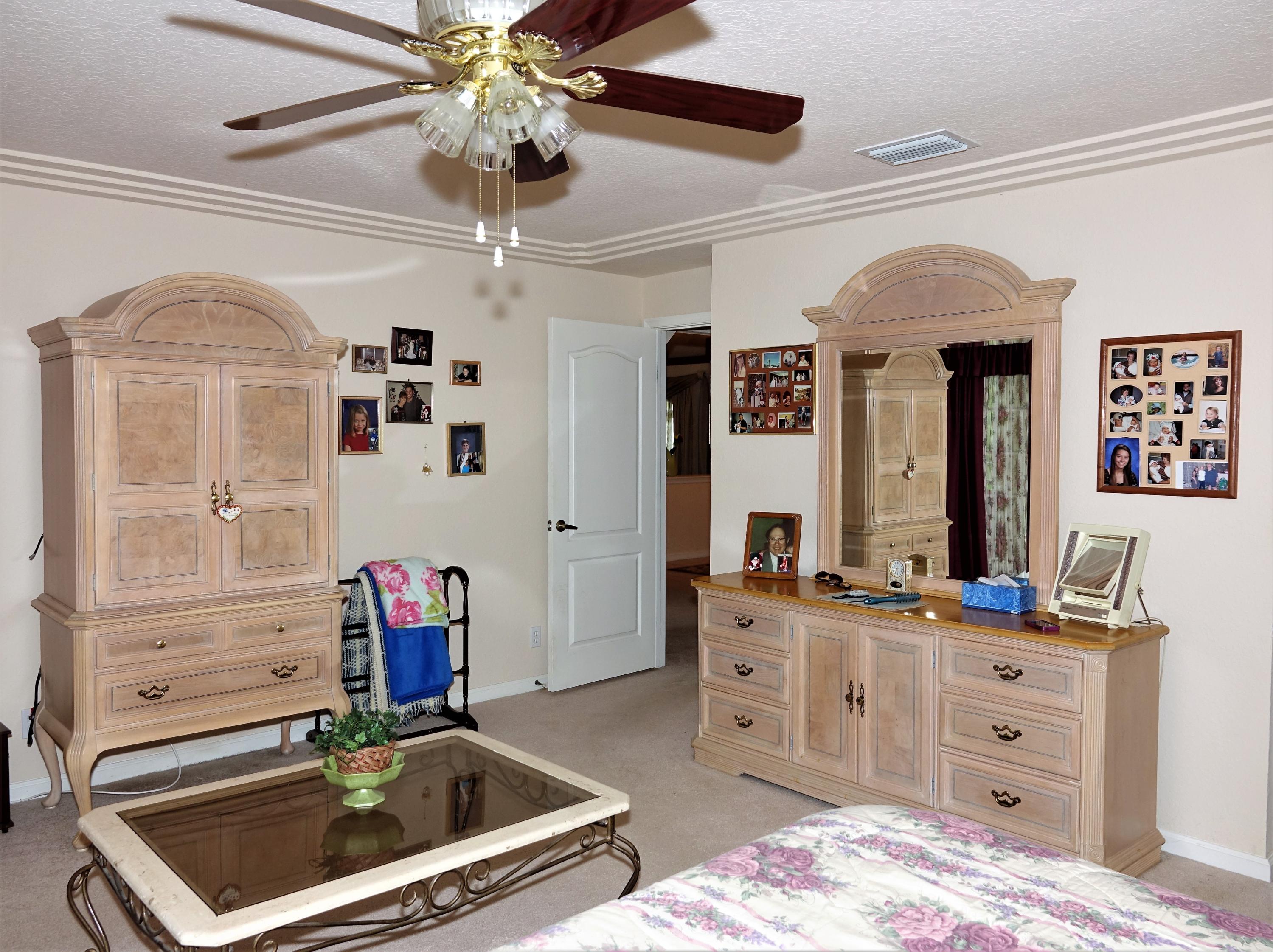 Imagine eating breakfast while watching the birds and squirrels in your private backyard. This property boasts over an acre of well manicured yard with sprinkler system. Come home and relax in your Master Suite with private tub, walk-in shower, closets, and extra storage. Get ready to entertain your family and friends with the over-sized dining room and bedrooms. With features like a hidden bar,large kitchen, gas stove with warming drawer, trash compactor this home is a dream. You can easily move from the huge sun room with cool deck flooring to the Living room, Family room and Master bedroom. Park your RV or boat on the extra large concrete pad next to the two car garage, which also provides extra storage. This home is move-in ready with drapes, washer, dryer, freezer, ceiling fans,