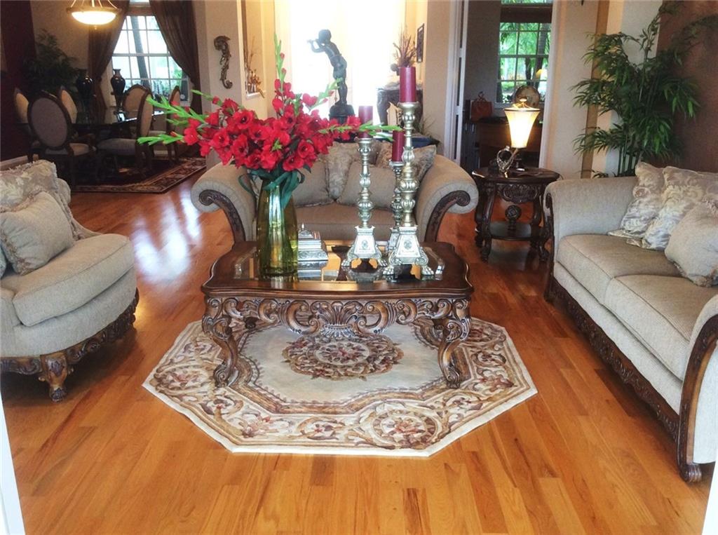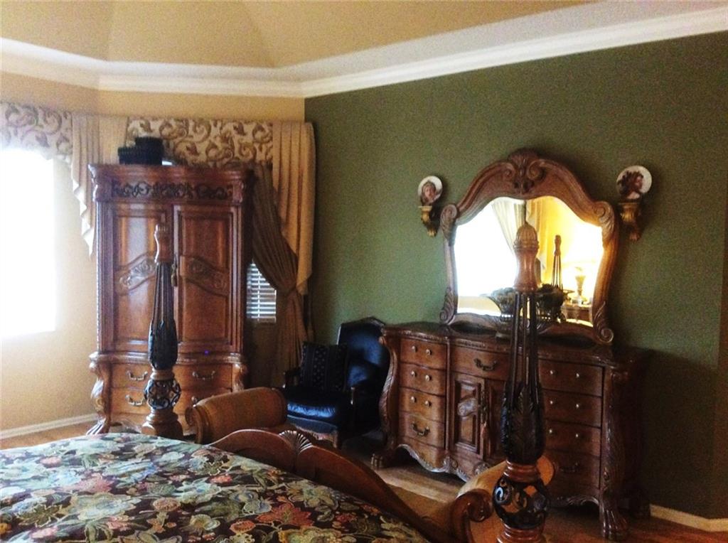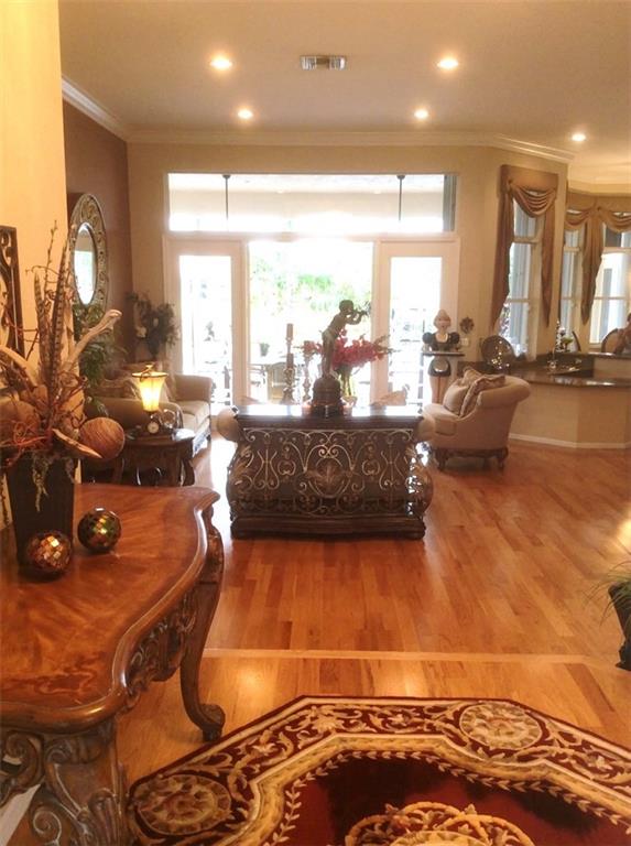 Tastefully constructed featuring a lake front lot, relaxing pool with a water fall overlooking lake, covered outdoor entertaining space, 3 car garage, split floor plan - 5 bed/4 bath, high ceilings, hardwood floors, marble counters, stainless appliances, large pantry, surround sound, fitness room, alarm, huge master suite, walk in closets, dining room, living room, family room, office, wet bar, custom window treatments. Motivated Seller - priced for quick sell!!! $2,500 Buyer's Broker Bonus!!!