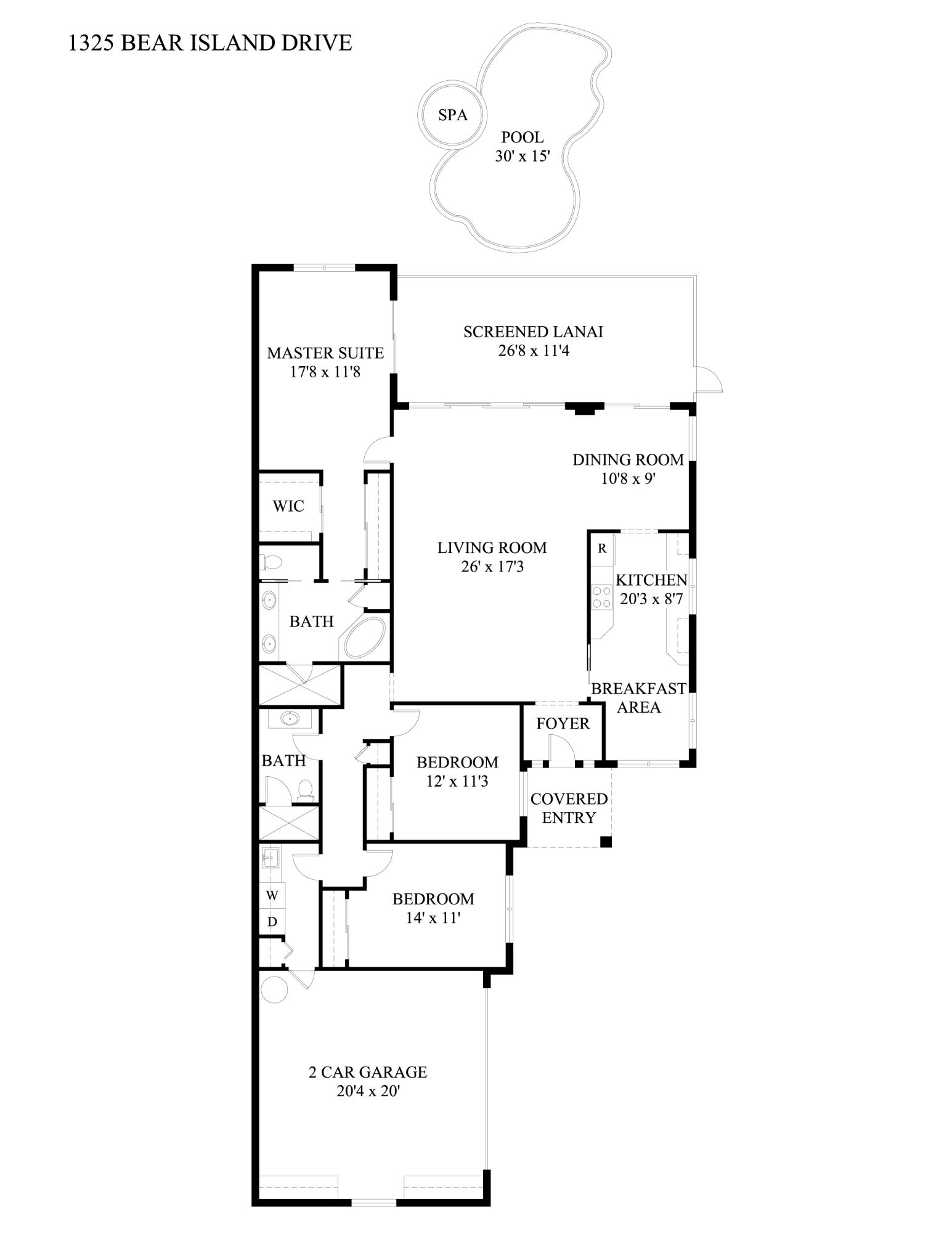Fabulous Bear Island - Saratoga model, rarely available extra deep lot on the 11th Hole of the Links Golf Course. The home features 3 bedroom, 2 baths with newly renovated bathrooms, kitchen, AC, whole house has been newly painted, newly screen porch. Tropical pool area and wonderful private yard.