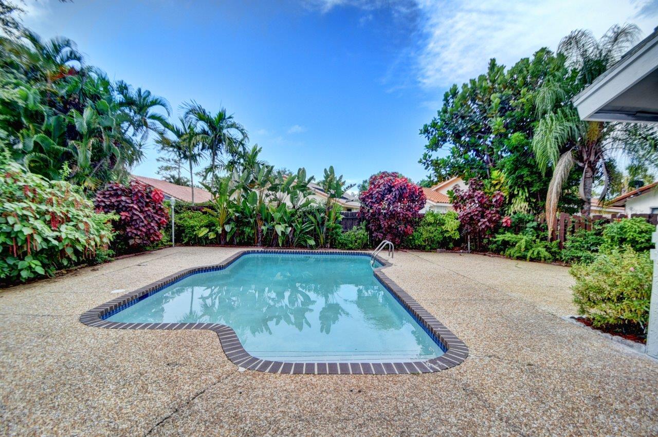 Located on quite cul-de-sac this beautiful, 4 bedroom/ 3 full bathroom single family home in located in one of Boca Raton's most desirable areas. Recent renovations include granite countertops and new countertops in the expanded eat in kitchen. Large separate dining and living/family room overlooks your private pool and enclosed backyard which is perfect for outdoor entertaining. In addition to a new roof in 2010, both air conditioning units were recently installed and many of the windows have been replaced and are now impact resistant. There is tile flooring in all of the living area and wood floors in the bedrooms. Low community fees cover front yard, sprinklers, pest control and all common areas. All 'A'schools are close by and you can walk to Verde Elementary,