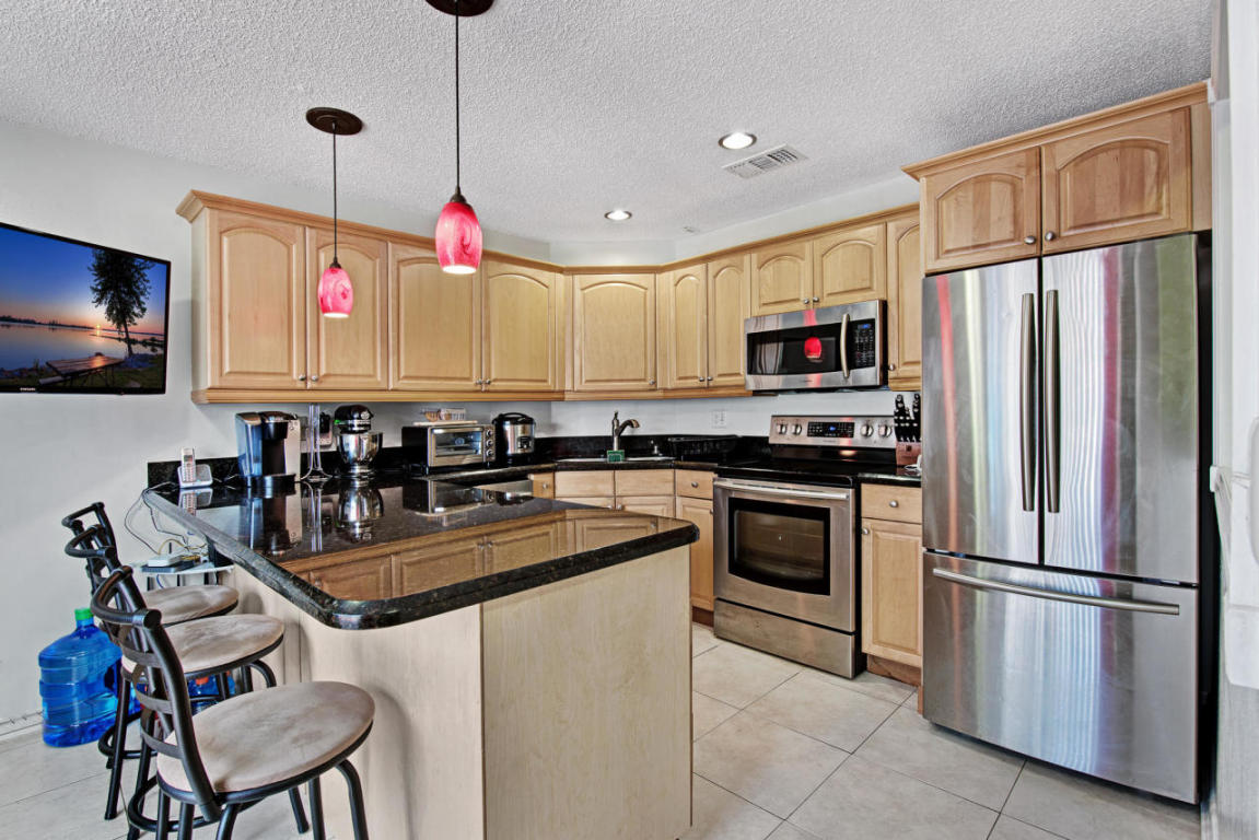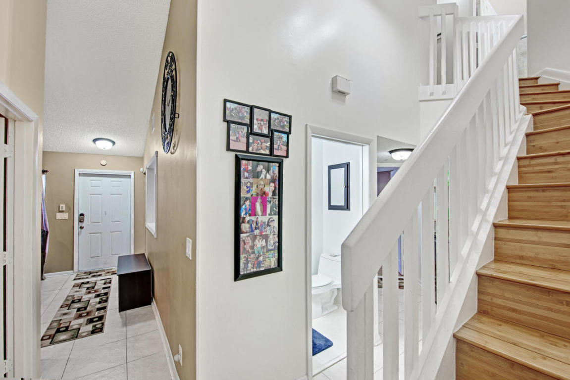 Beautiful 3 bedroom, 2 1/2 bath townhome with a garage that has been partially converted to an office. Kitchen has been updated with Stainless Steel appliances and granite countertops, tile flooring in kitchen and living areas, beautiful bamboo wood flooring on the staircase and in all the bedrooms. A/C system was replaced in 2014, new hot water tank in 2016. TV, projector and projector screen in the living room and washer and dryer are included. Conveniently located near shopping, restaurants and the Palm Beach International Airport.