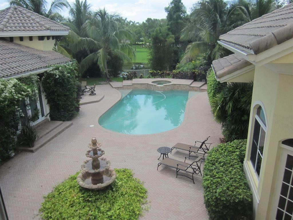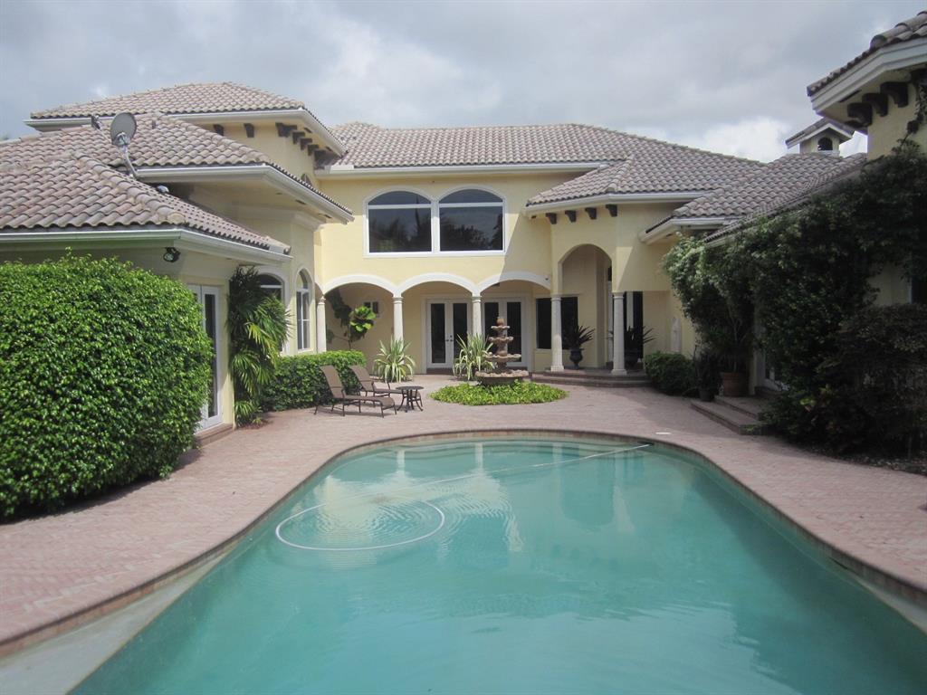 Elegant two story courtyard lakefront home with separate guest house. Situated on an over-sized lot, the main house features four bedrooms plus a loft and guest house. The guest house is configured with one bedroom and a home office. Extensive upgrades throughout include marble floors, impact windows, newer kitchen with top-of-the-line stainless steel appliances, including a Wolf gas range, granite counter tops and a four zone AC unit. The residence is flooded with natural light as well as stunning views