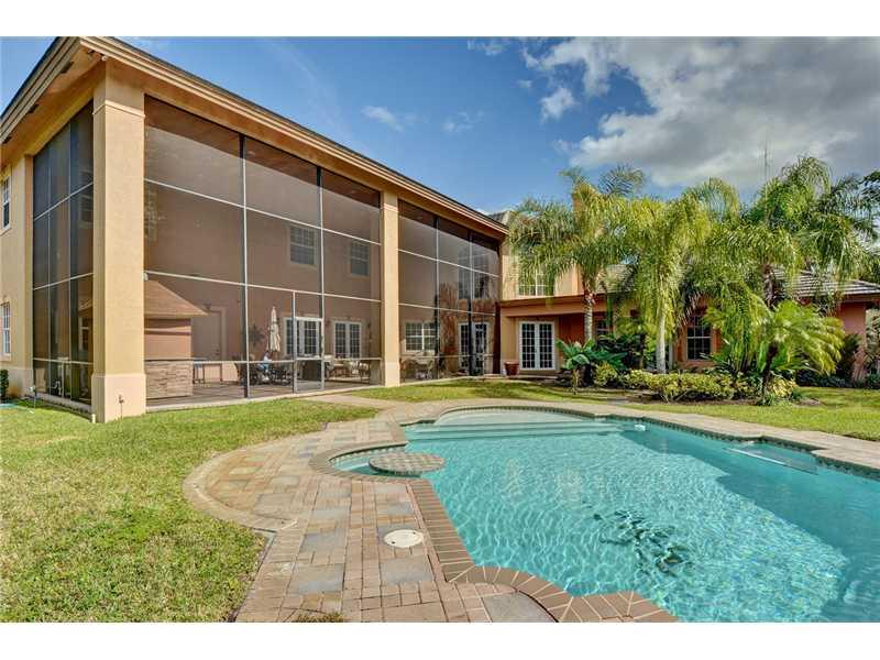 Magnificent 2-Story Estate on Acre w/fenced backyard*YB 2003*Porte Cochere Entrance*Foyer to Dramatic Living Rm, w/Fireplace+Built-ins*Formal DR w/area for Wine Cellar*Island Kitchen w/Huge Pantry*Family w/Wet Bar+Built-ins & French Drs to enormous covere d & screened Patio*Elegant Master Suite w/Exercise Rm, 2 WICs & French Drs to 2nd Covered patio*MBath w/spa tub, 2 vanities+Shwr*Den/6th Bdrm+Office on 1st*2nd flr: 4 bdrms/3 Baths*Open Pool/Spa & Tot Fence*Generator*3 car garage has A/C*SEE FLOOR PLAN