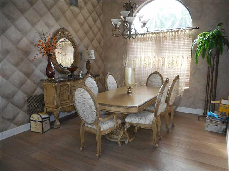 Beautiful 4 bedroom/2.5 bath pool home in Carriage Point. Property has gorgeous wood floors through out. Kithchen Has wood cabinets,granite couters and SS applliances. The baths are also updated and the Master Is one of a kind with a claw foot tub, pulsat ing shower, and glass sinks. The backyard has a great pool and spa with a marble patio, area contains a gas fireplace, built-in grill, pizza oven, and bar area great for entertaining. The windows and doors are all impact.