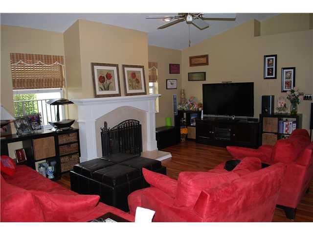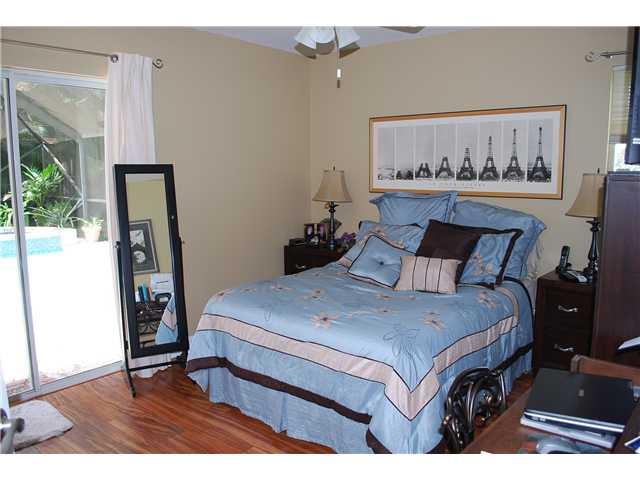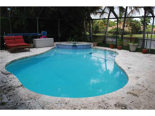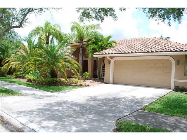 Beautiful, ready-to-move-into 4 Bdrm, 2 1/2 Bath 1 story pool home on a lake. Home has upgraded kitchen appliances, wood burning fireplace, Pergo Koa 5" wide board wood-laminate floors in main living areas, 2 car garage, huge screened patio / heated pool with spa, laundry room with sink, hurricane shutters, S-tile roof, owner owned burglar alarm, and satellite dish. Freezer in garage does not stay. Weston is your home town - great schools - rec areas - parks - nearby Sawgrass Mills Mall. A home for you!