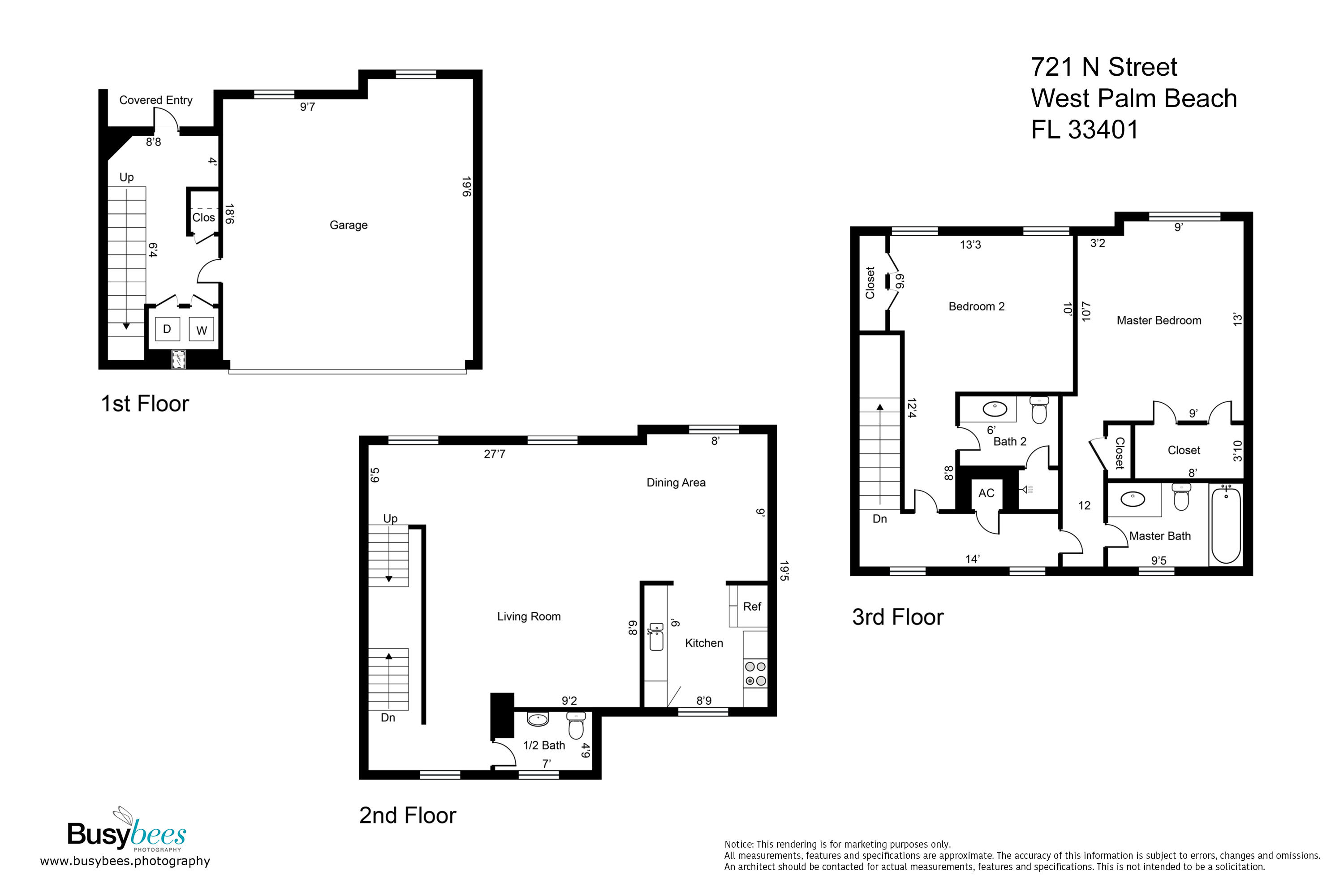 The heart of downtown- fabulous 3 story townhome with 2 car garage on quiet tree lined non tourist street, walking path to downtown directly adjacent to Convention Center- Flamingo Park, the New Cultural Corridor and Armory Art Center. NO PARKING GARAGE BEHIND UNIT. Bamboo floors, tile entry, 2 spacious bdrms 2 bathrooms, powder room. Laundry inside with huge 2 car garage, decorative paver entry. Crown molding 6'' baseboards, wood blinds, NEW AC 2017,professionally freshly painted Feb 2017, new garage door2017. Sunny open space north towards town behind unit NO 3 STORY GARAGE. Walking distance to City Place, Court House, Norton Museum, new arts warehouse district, Armory Art Center, Kravis, Dreyfoos School of Art and South Dixie Antique Row. So many new restaurants on S Dixie