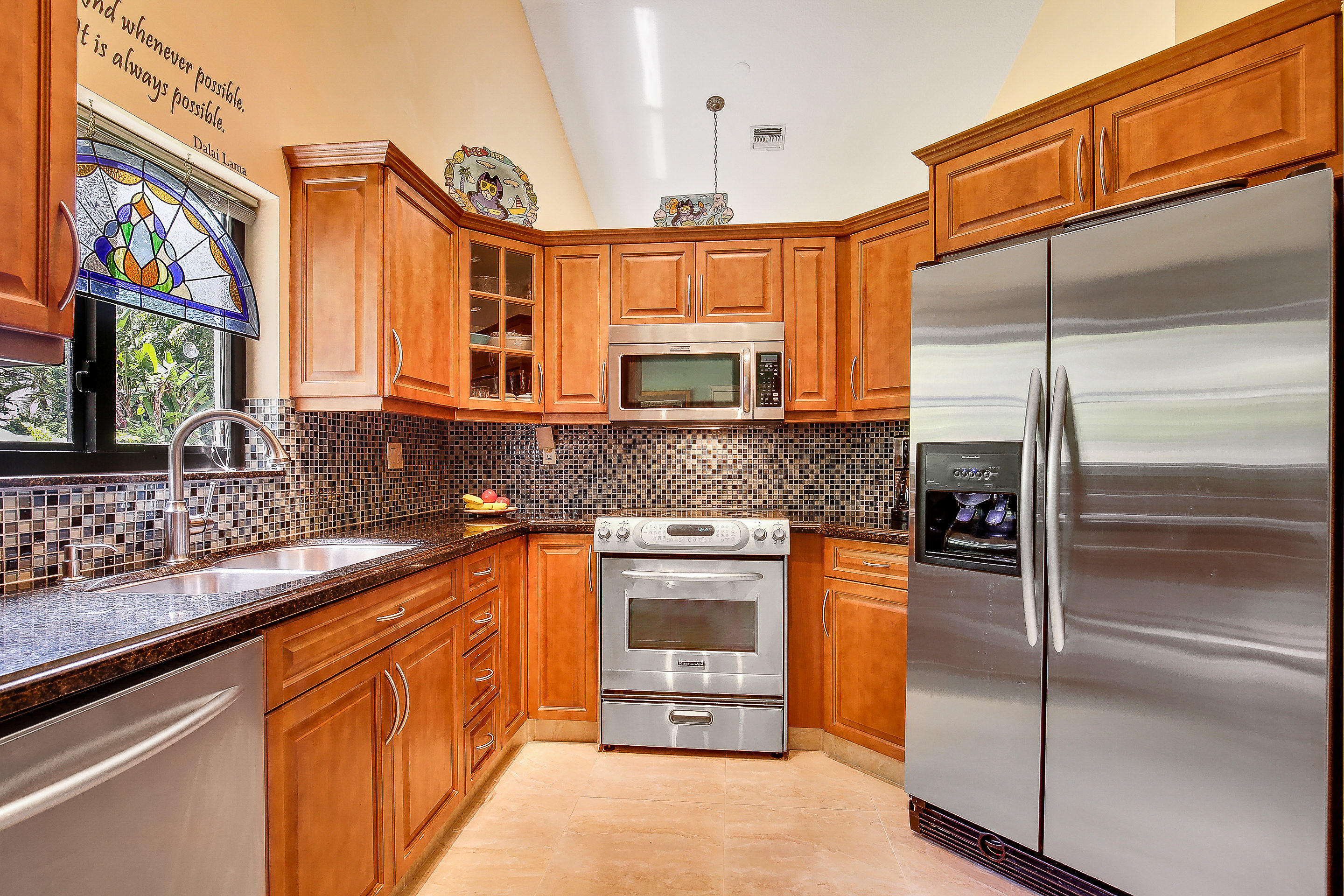 Gorgeous totally updated home situated on a rare oversized lushly landscaped private tranquil preserve lot. Plenty of room for a pool or patio area addition to expand your outdoor living space, play area for children or your pets. This home features impact doors/windows, barrel tile roof(2015), AC, tankless hot water heater & Miami Dade garage door all replaced 2015. Updated granite eat in kitchen with SS appliances & wood cabinets. Master suite offers patio & preserve views, updated bath with quartz vanity & walk in custom closet. Updated guest bath with granite vanity. 20' tile floors, Hunter Douglas Silhouettes & real wood blinds. Upgraded lighting & fans. Knockdown vaulted ceilings and plentiful windows/doors bring tons of natural light in. CASH OFFERS only for sellers convenienc
