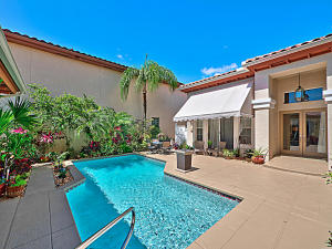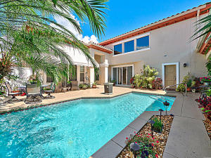 Stunning Boca courtyard pool home - 4 BR 3 1/2 BA, magnificent island kitchen with million dollar view of family room, pool & guesthouse. Close to the impressive Santa Barbara clubhouse, pool, tennis, exercise facility, banquet center & more. Located within the private inner circle of Santa Barbara, you enter the fantastic home to the sought after private court yard pool & gathering spot for entertaining and outdoor dining. Beyond is a double door entry to the living room and dining room with soaring volume ceilings. Spacious master suite with bamboo floors with courtyard view enjoys a master bath with double sink granite vanity, separate shower, Roman tub, private water closet & two extensively fitted walk-in closets. The large and magnificent updated island kitchen include ...