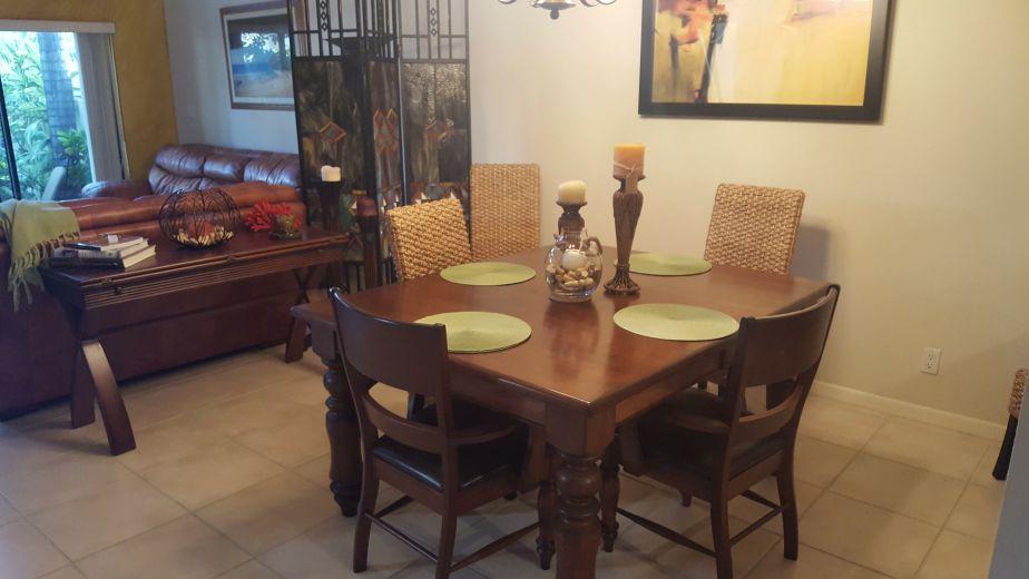 PERFECT EAST OF I-95 LOCATION, CLOSE TO BEACH. 1750 SF UNDER AIR. THE WOODLET IS BOCA'S BEST KEPT SECRET. LARGE REMODELED KITCHEN WITH GRANITE AND UPDATED BATHS. HUGE WALK IN TILE SHOWER IN MASTER BATH. MASTER BEDROOM AND LOFT UPSTAIRS AND 1 BEDROOMS DOWN, THIS TOWNHOUSE MODEL IS SET UP FOR 3 BEDROOMS, HOWEVER WE USE THIRD BEDROOM SPACE AS SITTING ROOM WITH WET BAR . TILE THROUGHOUT. LIVING AREA WITH HIGH VOLUME CEILINGS. LARGE GARDEN LIKE PATIO OPENS TO TROPICAL COMMON AREA. CLOSE TO COMMUNITY HEATED POOL. GREAT LOCATION, NEAR HOSPITAL, FAU, MIZNER AND WHOLE FOODS. NO PET SIZE RESTRICTION. NO DANGEROUS BREEDS.