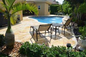 TROPICAL PARADISE IN THE COLONNADE! Upgrades throughout, meticulously maintained - MOVE RIGHT IN! Interior lot with Resort-style Backyard boasting Marble Patio with Water Feature and Deck Jets|Gorgeous Tropical Landscaping|New Pool Pump,Filter and DiamondBrite. Interior shows like a Model Home!Bright|Open floor plan|Vaulted Ceilings|Windows Galore! Fully Upgraded Gourmet kitchen|Custom wood Cabinetry|Pull out organizers|Uba Tuba Gold Granite counters|SS Appliances|Microwave Drawer|Hurricane Impact Front door,Garage door and Windows|2 zone A/C.Walking distance to A+ schools|LOW HOA| Beautiful Quiet Community with Mature Tree-lined streets|City maintained Park, Lake, Playground & Tennis Courts| 8 mi to the beach,2 mi to Boca Town Center Mall,3 mi to I-95,4 mi to FL Turnpike