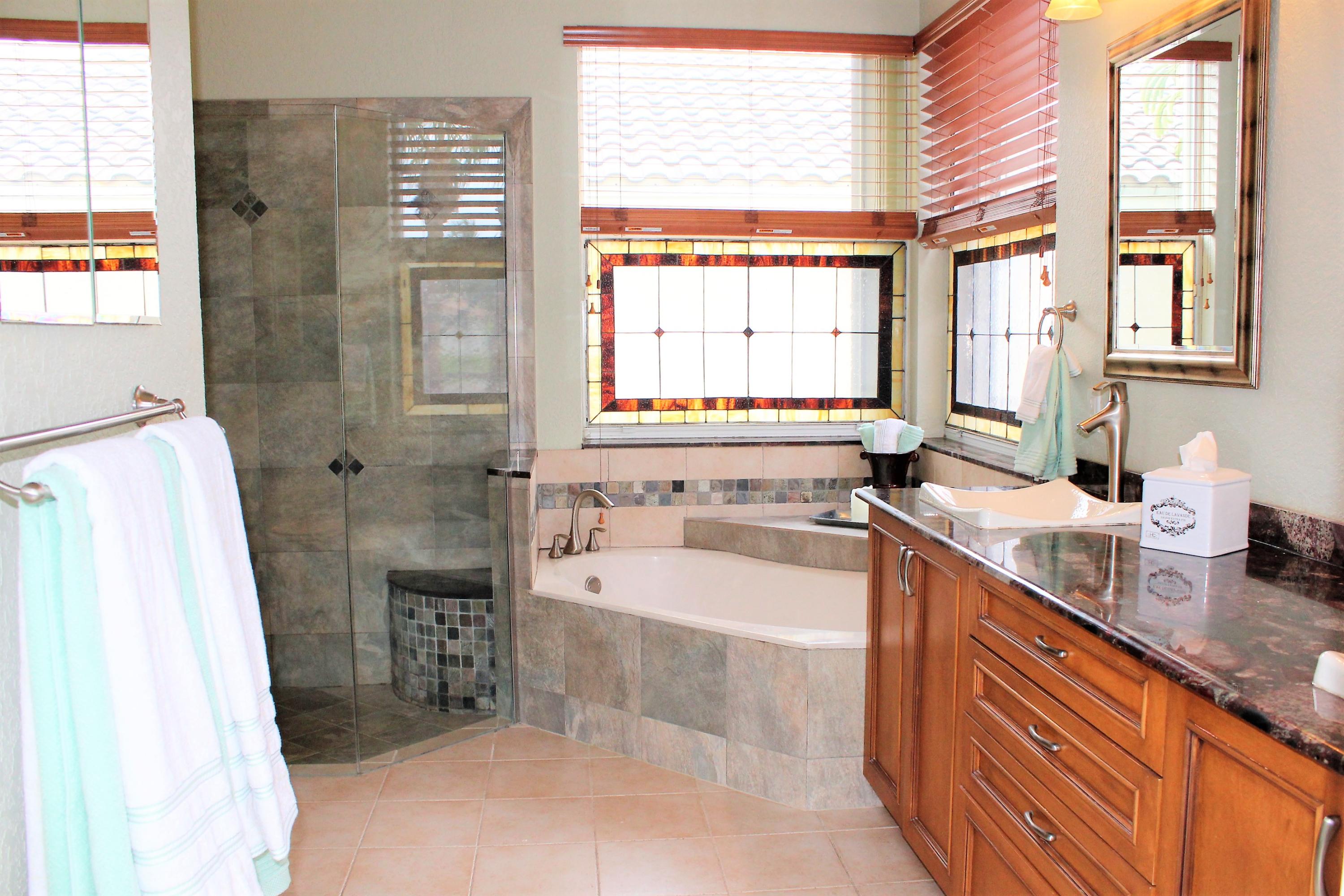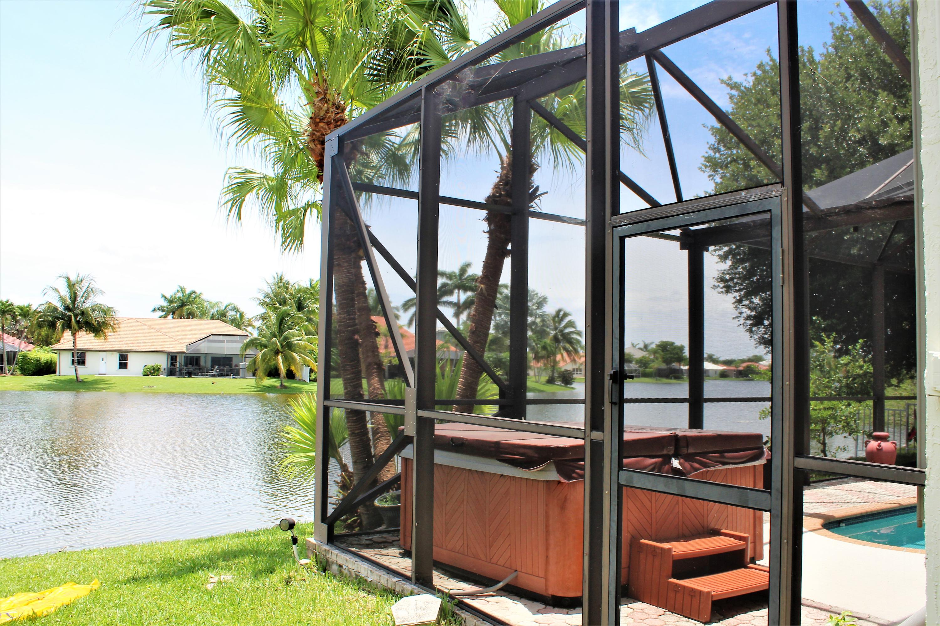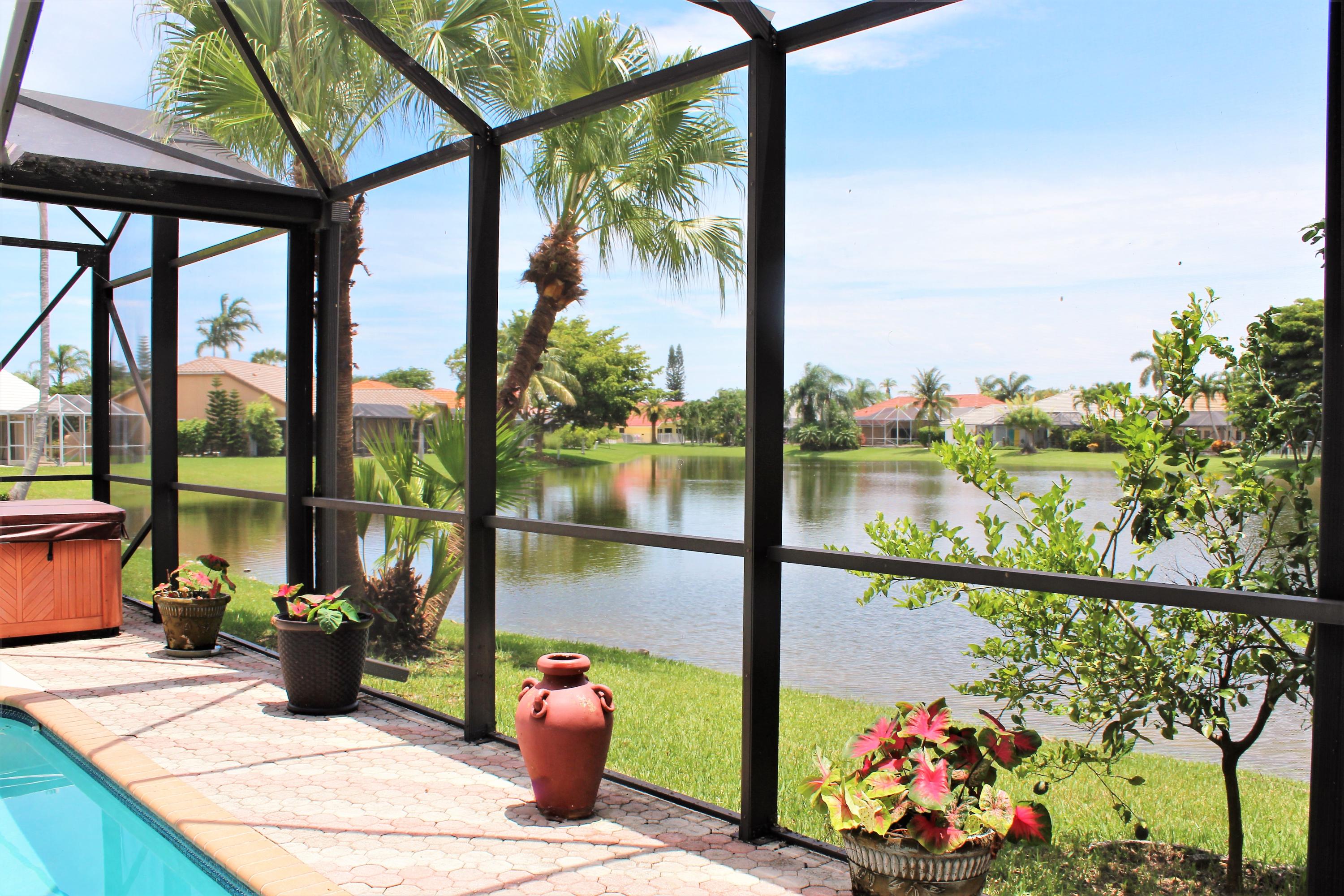 Stylish & spacious Boca Winds home, on de sac in great neighborhood! Remodled kitchen has custom 42'' tall cabinets with plantation shutters. Convenient split floor plan , with rarely found 5 bedrooms, all one level ang airy high ceilings. Master & living rooms beautifully accented with tray ceilings details with crown molding. Tile throughout, bathrooms updated have granite counter tops, full size laundry room with bonus utility sink. 5th bedroom has separarate entrance and driveway, perfect for guests or mother in law suite. Enjoy beautiful lake views , entertaining by the pool , relaxing in the jacuzzi. Located in west Boca community , near shopping & dining, excellent parks, and A+ schools.