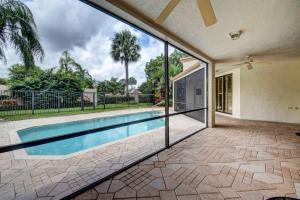 Outstanding opportunity to move into this private and well-maintained corner lot with fenced-in pool. Tile floors throughout living areas, vaulted ceilings, and carpet in the bedrooms. Lots of custom features from original owner including central vac, cabana bath, walk-in closets for extra storage, plantation shutters, 2 AC units, granite counters, all built with an open floorplan. Screened-in patio overlooking the pool with detailed landscaping covering the grounds. Boca Pointe is all ages and does not require membership but offers a variety of options to meet any budget. Call today - Property won't last!