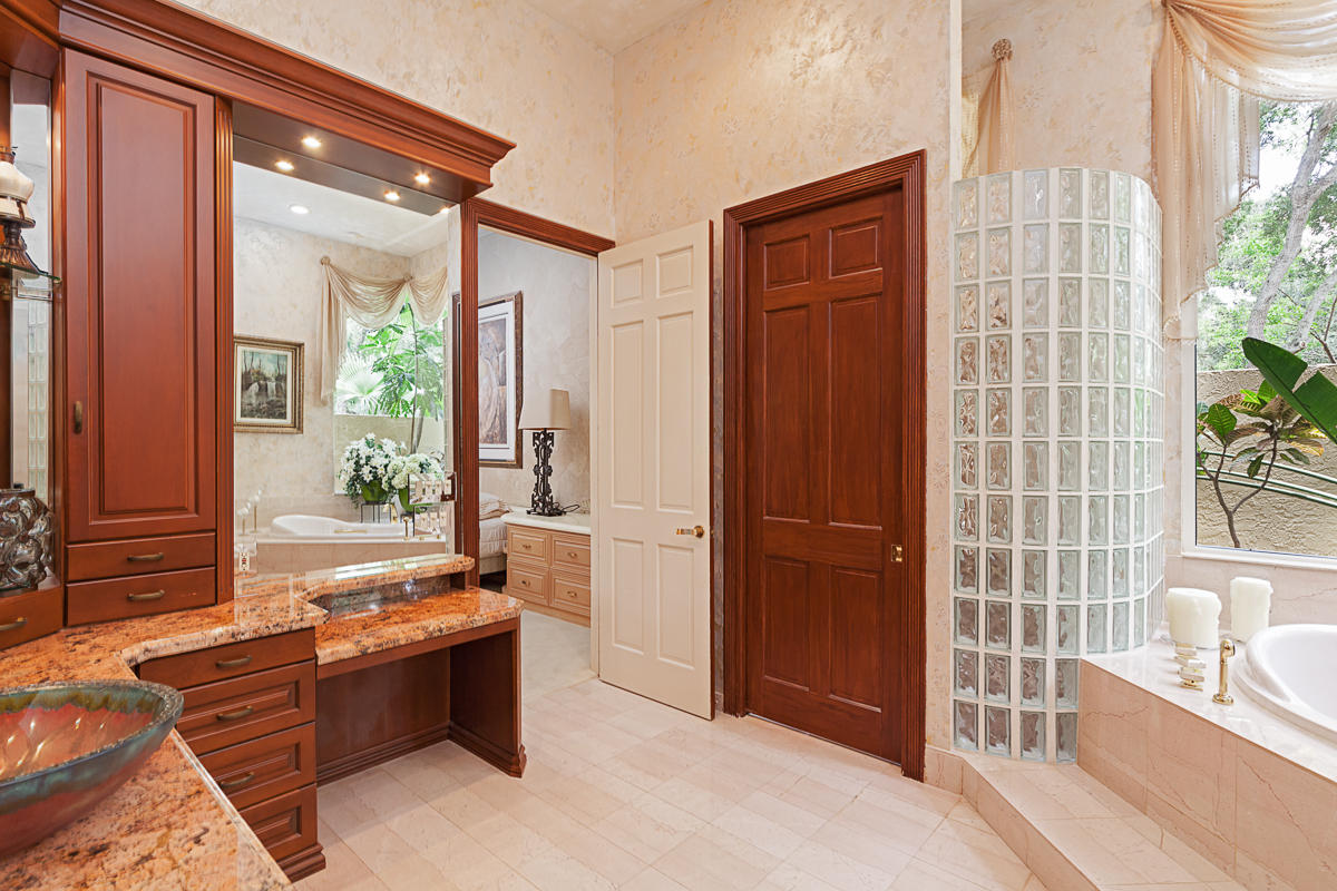 4TH BEDROOM IS NOW USED AS PANELED OFFICE. CUSTOM LIGHT-FILLED TROPICAL PARADISE! THIS WONDERFUL, TOTALLY CUSTOM RESIDENCE IS SITED ON A LUSH .61 +/- ACRE, CUL-DE-SAC LOT WITH OVERSIZED LAP POOL AND AMAZING LANDSCAPING CREATING TROPICAL RESORT-LIKE FEEL. FEATURING DOUBLE DOOR ENTRY, OPEN FLOOR PLAN, PRIVATE GUEST HOUSE, MARBLE & WOOD FLOORING IN LIVING AREAS, VOLUME CEILINGS, CROWN MOLDINGS, LARGE ISLAND KITCHEN W/DOUBLE SUB ZERO, MASTER SUITE W/HIS & HER BATHS & PRIVATE SITTING AREA, GORGEOUS PANELED LIBRARY(OR 4TH BR) PLUS BONUS 2ND DEN & 3 CAR GARAGE. ALL THIS IDEALLY LOCATED IN ONE OF BOCA RATON'S MOST SOUGHT AFTER GATED COMMUNITIES, CLOSE TO FINE DINING, PREMIER SHOPPING, MAJOR HIGHWAYS, AIRPORTS AND BEACHES.