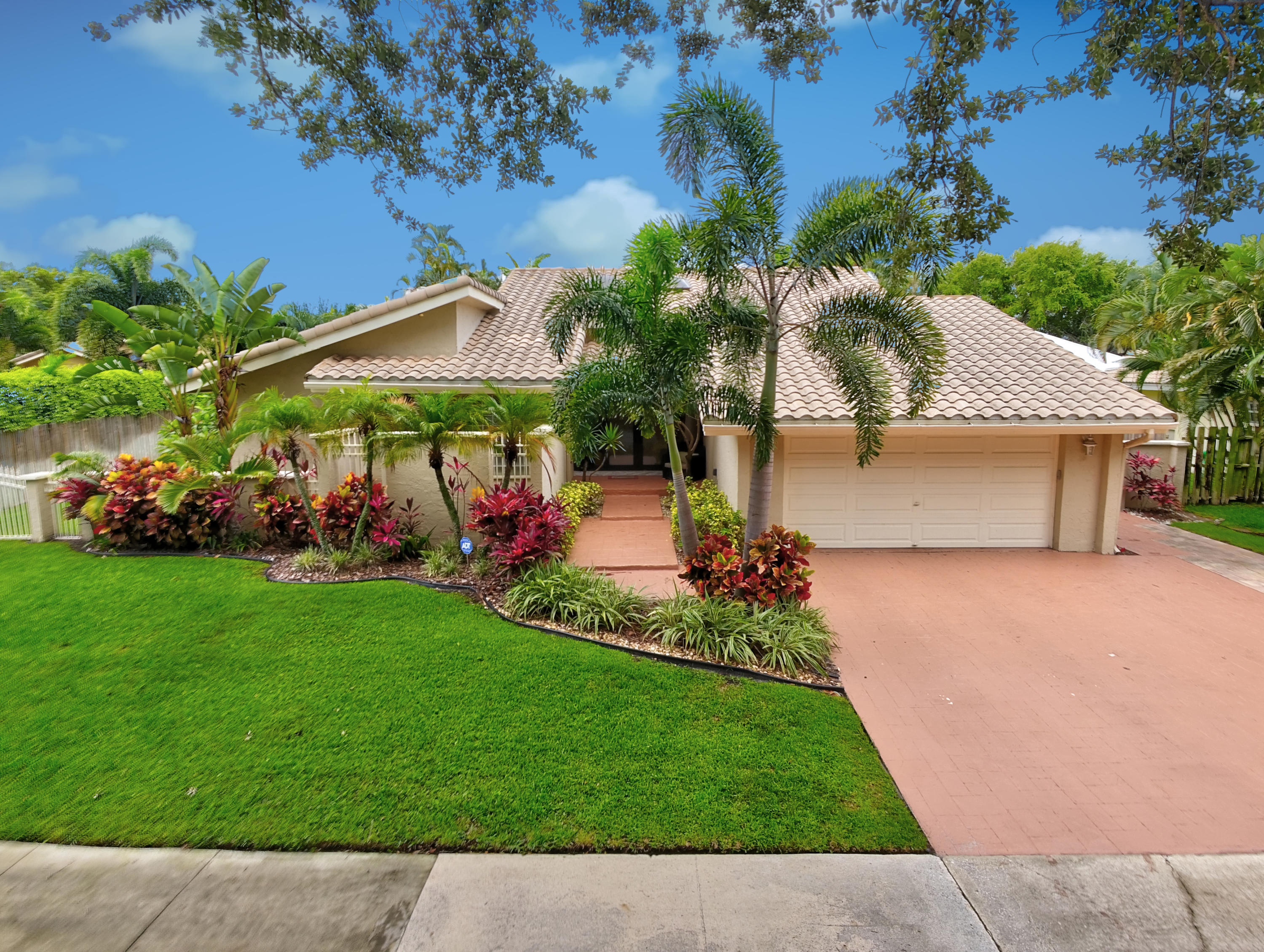 This immaculate home is in one of Boca's most desirable non gated communities. On the exterior you'll notice an extended patio and driveway with professionally designed landscaping and a very large grassy, private fenced in yard, in addition to the beautiful pool and convenient custom built outdoor shower. Upon entry of the home, the tall ceilings, open floor plan and ample windows and skylights give the home a very inviting feel. Almost all of the windows are hurricane impact. This updated home is in very close proximity to the community amenities. The mall, shops and restaurants are near by. Centrally located, not to be missed!