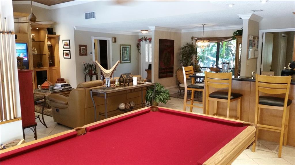 Beautifully landscaped corner lot in Plantation Harbor with two brick paver driveways circular in front. Updated kitchen with granite counters full back splash and cabinets to the ceiling. All new top of the line appliances with separate ice maker and win e fridge. 4 bedroom, 2,1/2 bath with a mother in law room or game room, office. Outside Cabana room or man cave. 15 by 35 pool with all pavers almost through entire back yard. Boat or RV parking behind the fence on side yard. Too much to list must see.