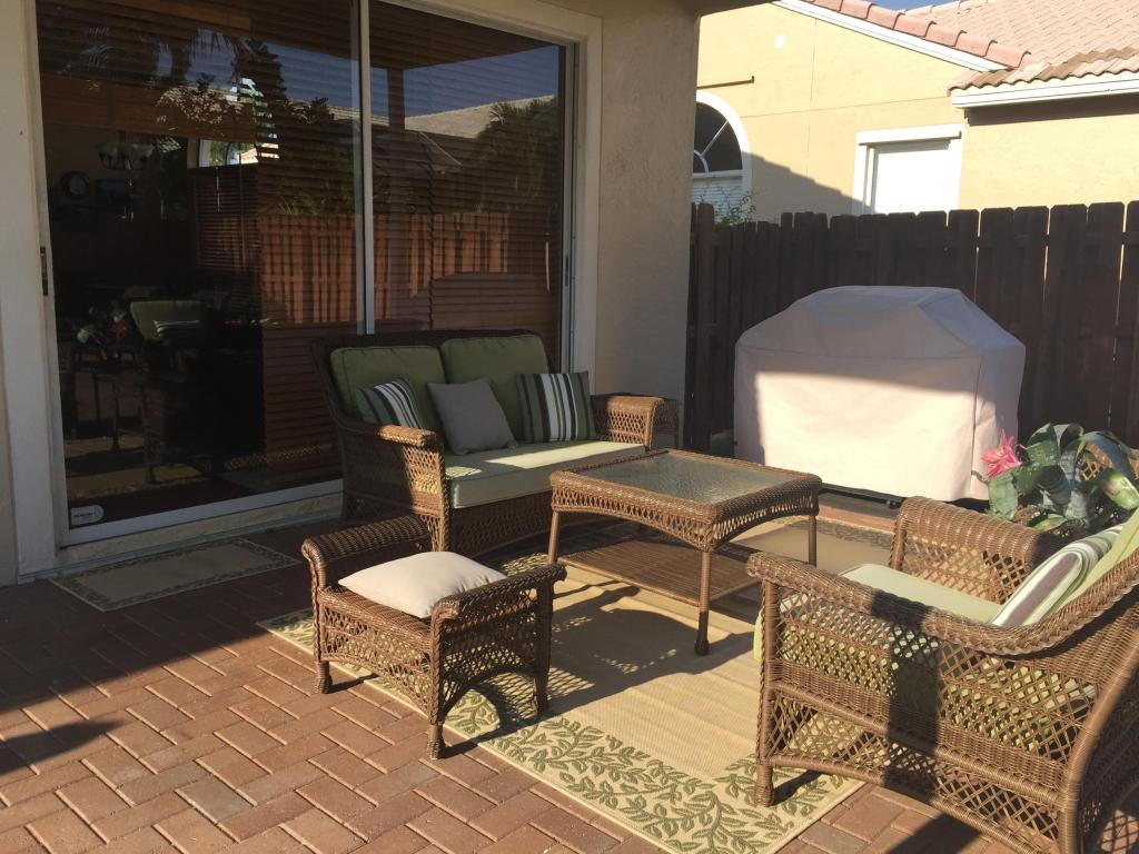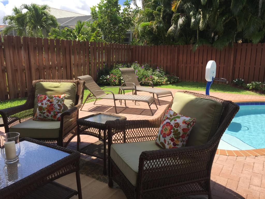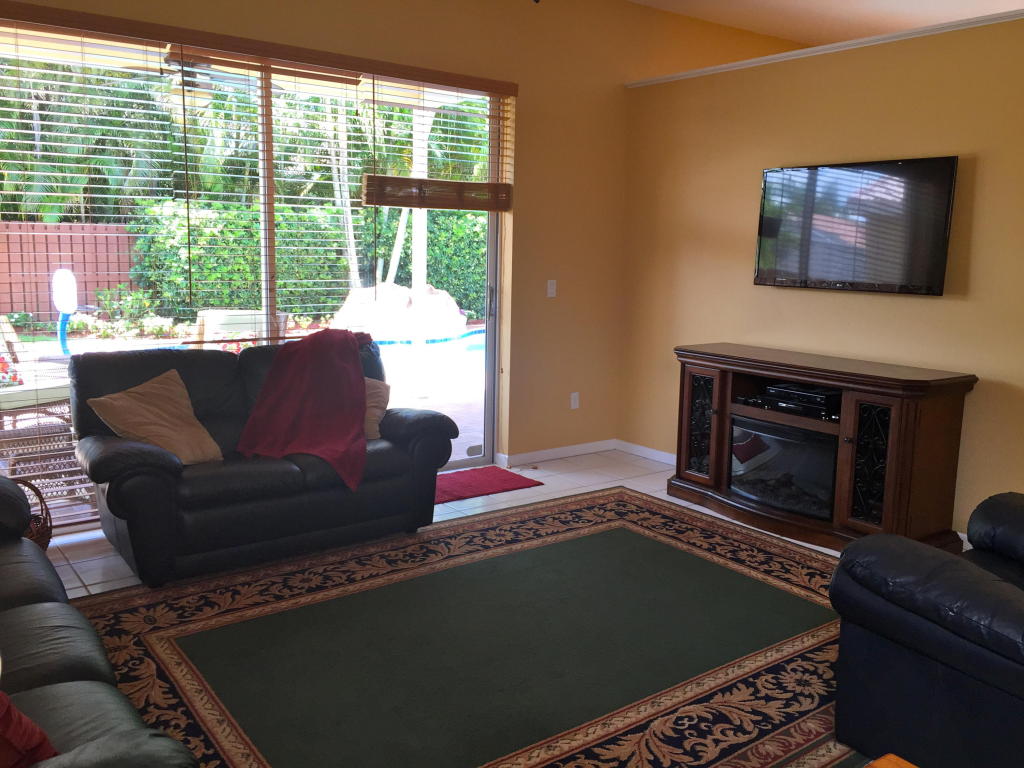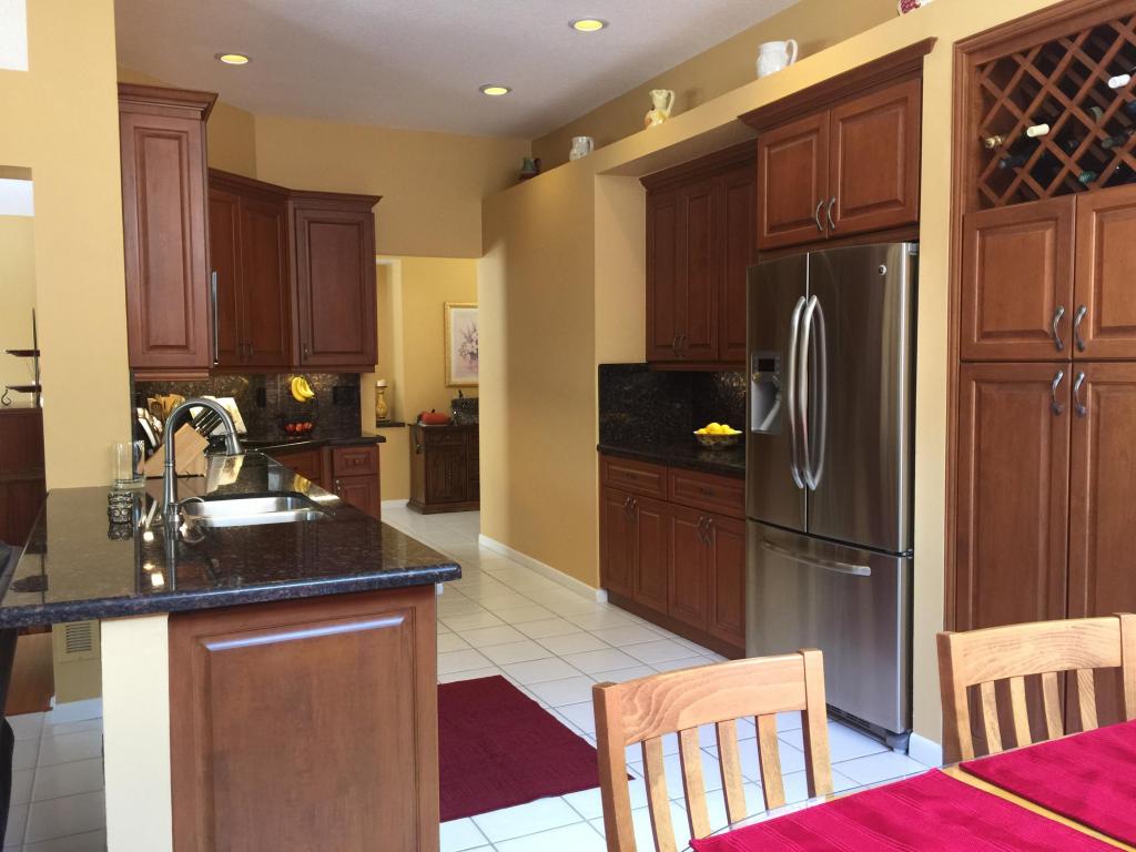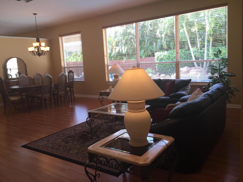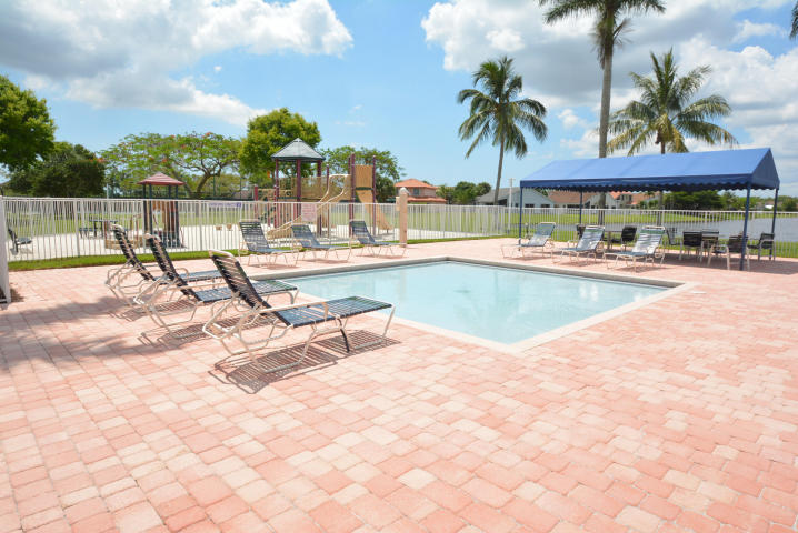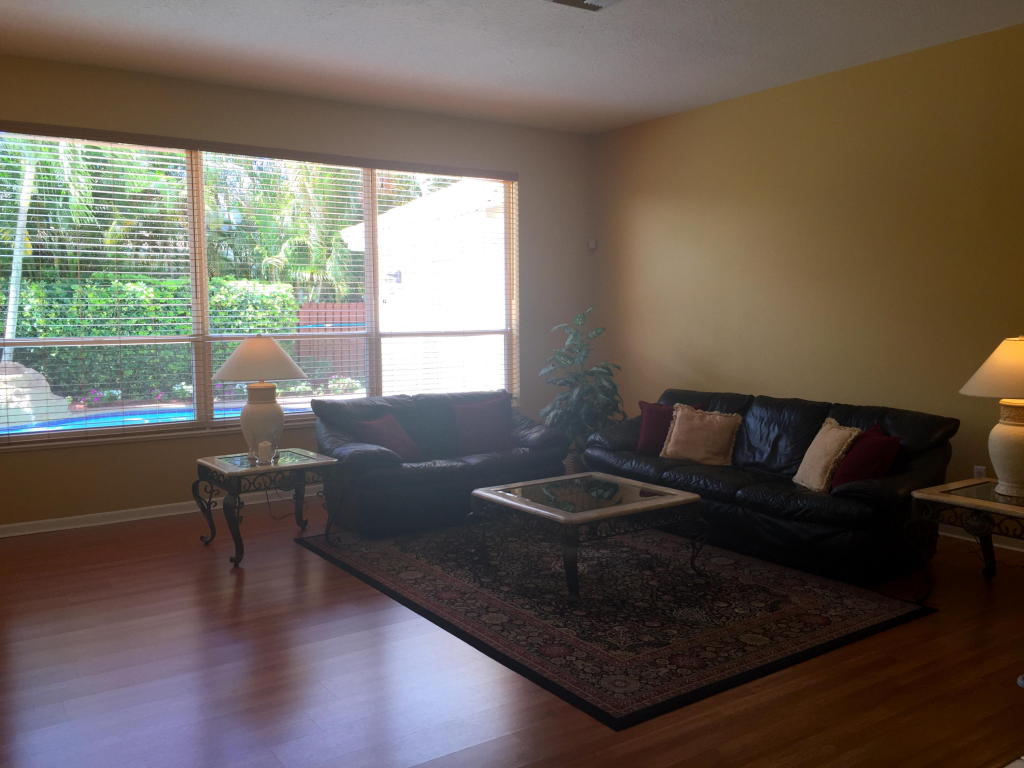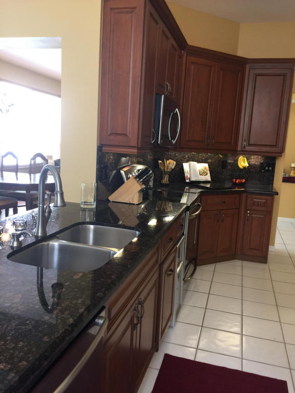 Beautifully renovated and lovingly maintained 4 bedroom single story pool home situated on a private interior lot. New kitchen cabinets with granite counters, new stainless steel appliances & wine cooler, new a/c 2015, open layout with soaring ceilings and huge windows with picturesque views of the tropical oasis backyard featuring the newly resurface heated pool & spa & waterfall. Be sure to check out the Olympic sized community pool, tennis & basketball courts, jogging paths, picnic area & tot lot included in the low monthly maintenance.