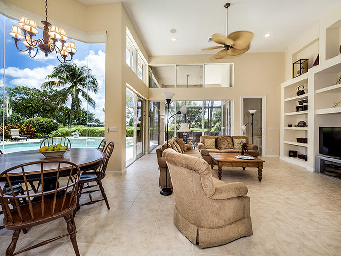 Light and bright move-in perfect home in desirable Egret Lakes offers exceptional value. With over 4500 square feet of air conditioned living space, this 5BR/4.5BA+Den+loft offers lush landscaping, stately pool and spa, clean and neutral. This impeccably maintained home offers a combination of electric, accordian and panel hurricane shutters. The master, den, and guest bedroom suite are located on the first floor. Three bedrooms and loft upstairs. The master suite is generous and an alcove boasts space for exercise equipment or a desk. Located close to Ibis's front gate and conveniently situated near Ibis's fine amenities. An extraordinary opportunity to enjoy a move-in perfect, light and bright home under $800,000 with over 4500 square feet and five bedrooms.