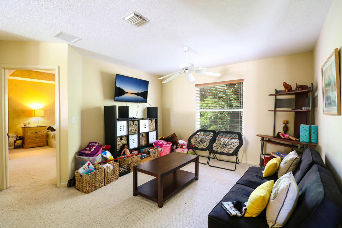 NEW TO MARKET: Large Family CBS Home in Private Gated Community, Catalina inside Lakes of Laguna, Large Master Bedroom Suite, High Ceilings, Open Floor Plan, with Tons of Storage + Attic, 3 Bedrooms + Den, 2 1/2 Baths, Newer AC, Separate Laundry with Full-Sized Washer & Dryer, Dish Washer, Pantry, Screened Patio w/Nice Yard & Full Mango Tree, Large 2 Car Garage, Hurricane Shutters. Located close to P.B.I, New W.P.B. Baseball Fields, and the Beach. Shopping & Schools nearby. Priced To Sell!