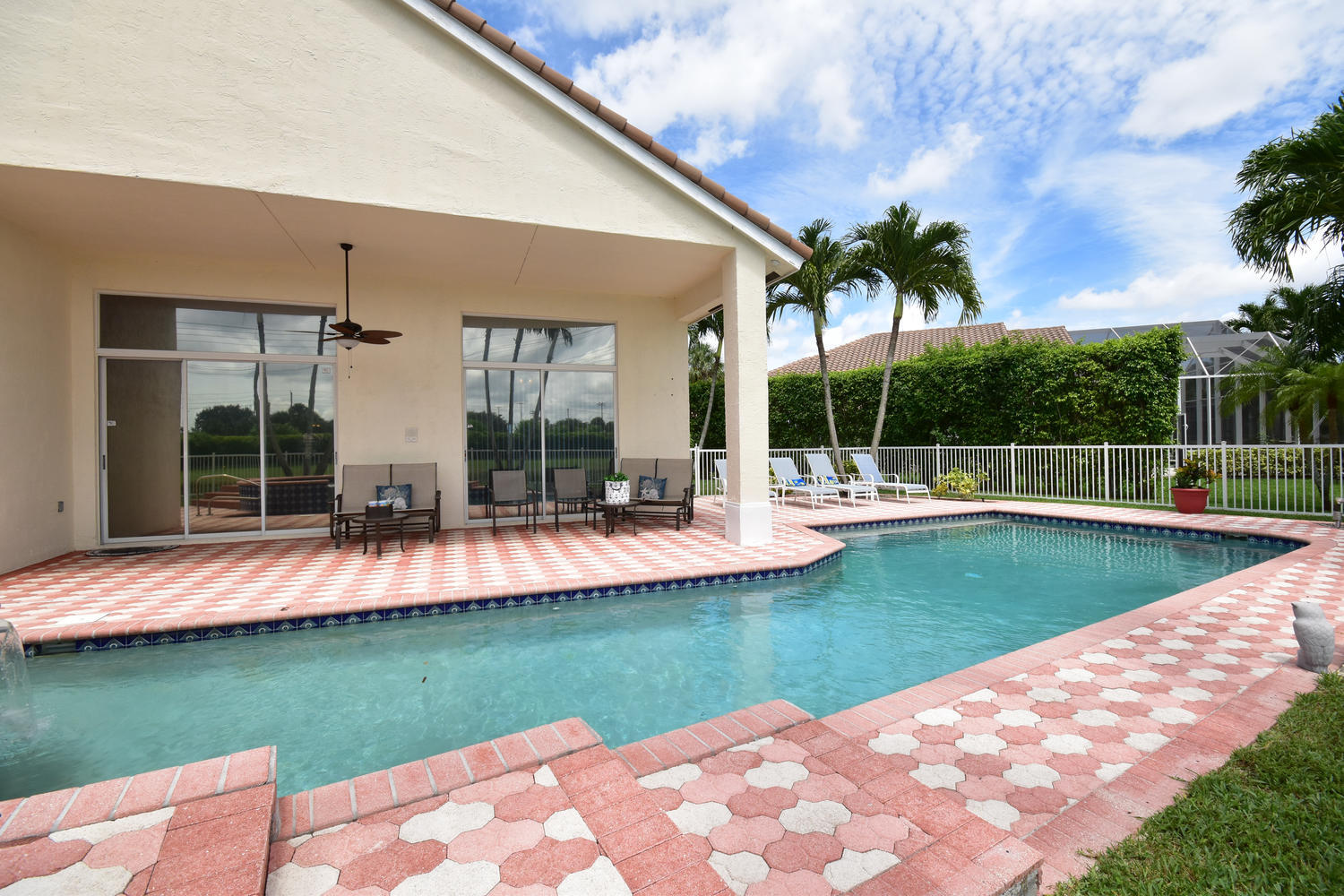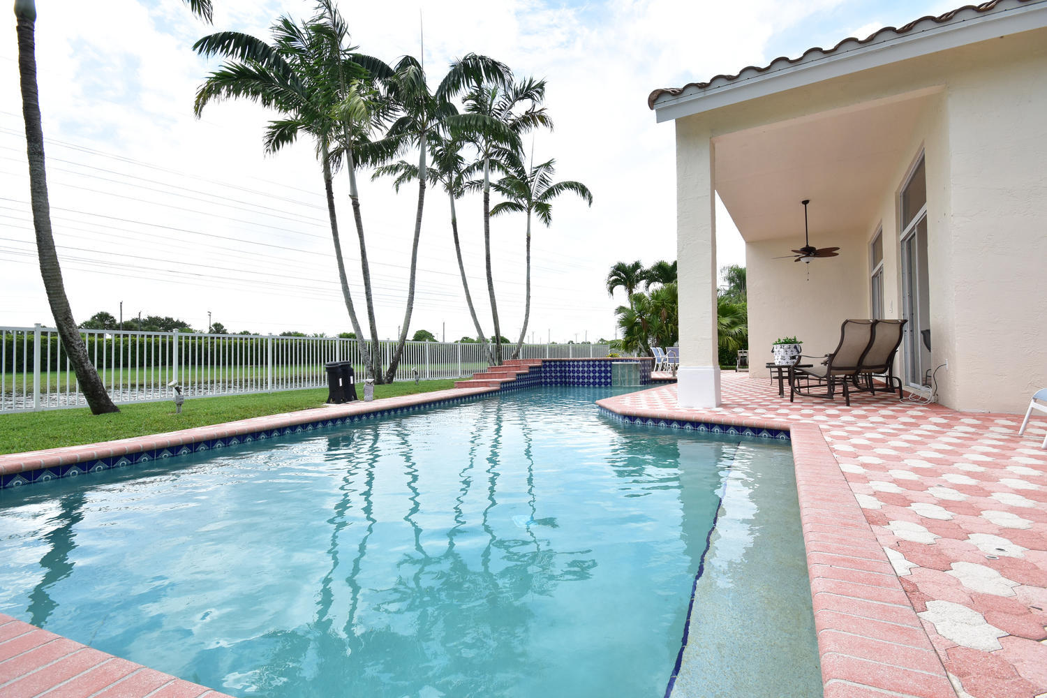 PRISTINE-Updated*Lakefront*Gorgeous resort-style heated large lap pool+10-person spa*Backyard:Private/secluded +tall dense hedges/fenced /spacious private patios+pavers/*Open-concept kitchen-family room-large breakfast bar*Volume ceilings most rooms*Roof replaced*18"diagonal tile:foyer,dining room,living room,kitchen+family room*Wood-look floors:bedrooms*Spacious kitchen:white panel cabinets,granite,stainless appliances*Master Suite:two walk-ins+sliders-view tropical paradise*Master bath:dual sinks* floor+shower tile replaced*roman tub*granite counters*Cabana Bath:floor+shower tile replaced+granite counters+replaced vanity*Guard gated clubhouse community:tennis/fitness/resort pool*Nearby:Shopping/entertainment/eateries/excellent schools/golf courses,water park,ball fields,tennis,handball.