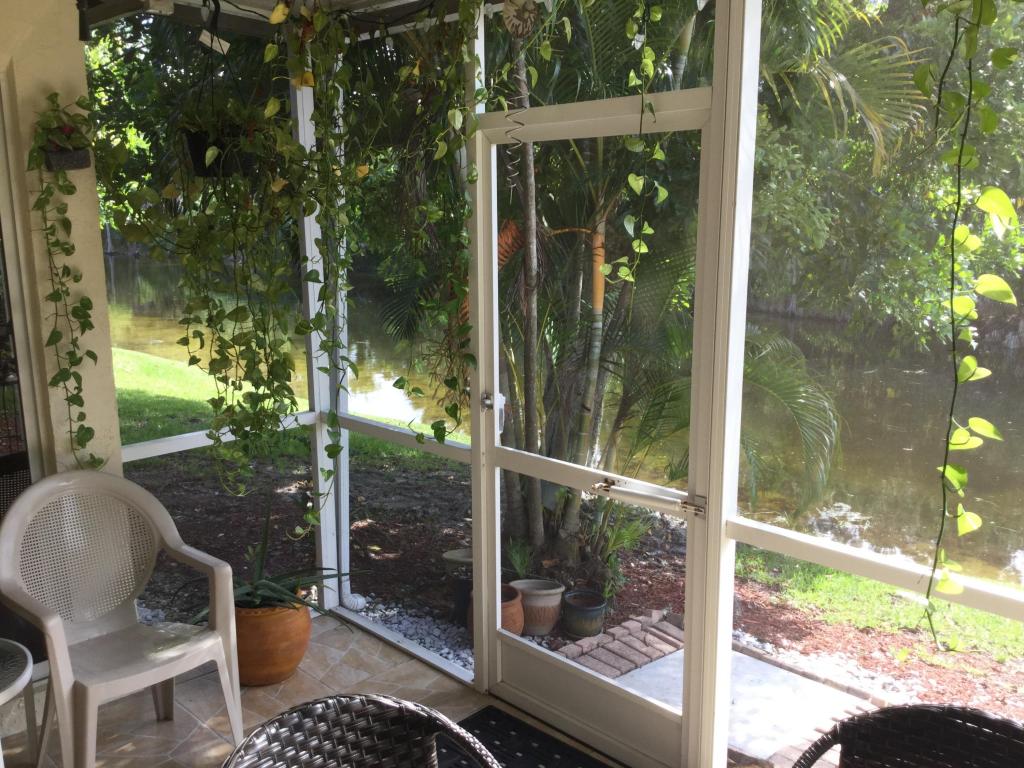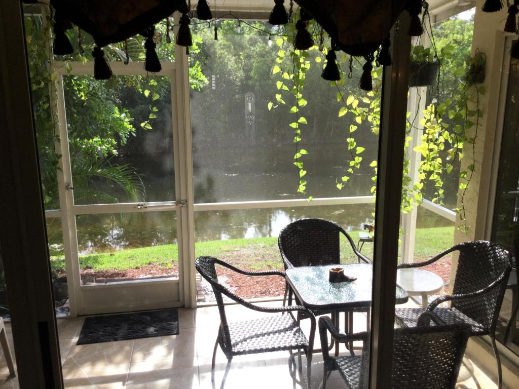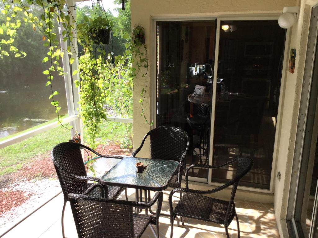 Gorgeous waterfront home in River Bridge! Features include enclosed and screened front entry,fully renovated eat in kitchen with Granite counters,dark wood cabinets and stainless appliances,screened Lanai overlooking tranquil river and total privacy,,spacious living room and dining area with raised ceilings, cozy den/3rd bedroom,master suite with full bath,twin walk in closets, glass block accent windows and Brazilian Cherry wood flooring, large one car garage off the laundry room,3 off street parking spots ,Clubhouse,Gym,Pool and much more!