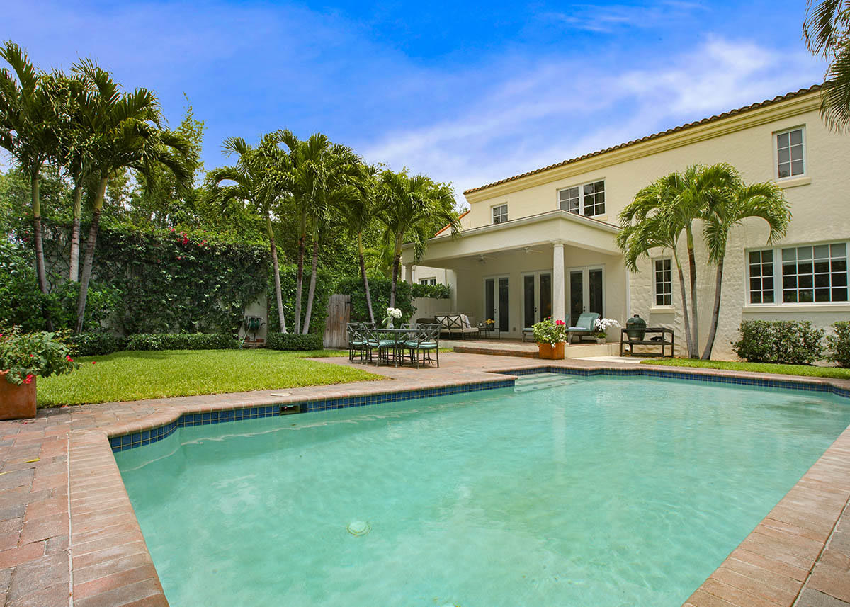 El Cid Mediterranean Masterpiece. This magnificent historic home was totally renovated including a huge 2 story addition in 2007 boasting 5 bedrooms and 4.5 baths, a spacious upstairs master suite with his and her baths and walk-in closets and a large adjacent sitting room, a gourmet kitchen pulled from the pages of Architectural Digest with a gas cook top, custom white cabinets and granite counter tops. Off the kitchen is a lovely formal dining room. The front facing Sun Room is drenched with natural light and has an original Pecky Cypress beamed ceiling, the formal living room has hardwood floors and an original fireplace, the family room has a ''glass wall'' of French Doors opening to the lushly private pool with covered and open paver brick patios. This wonderful family home has all