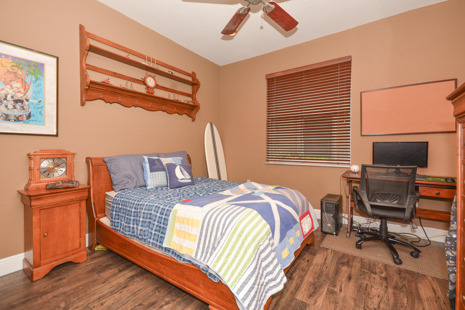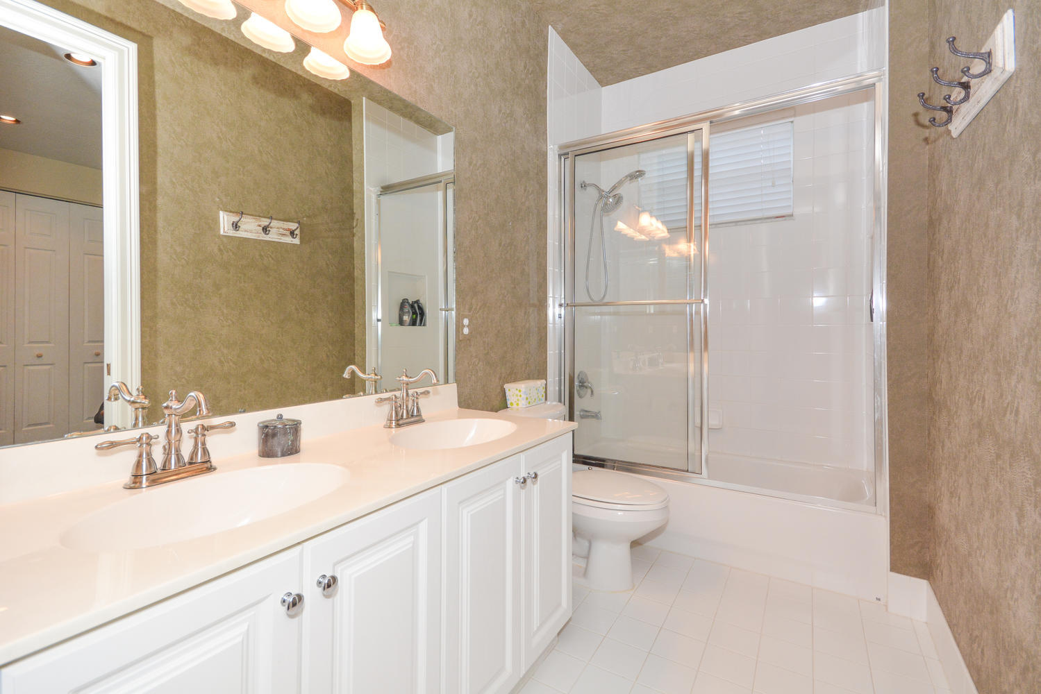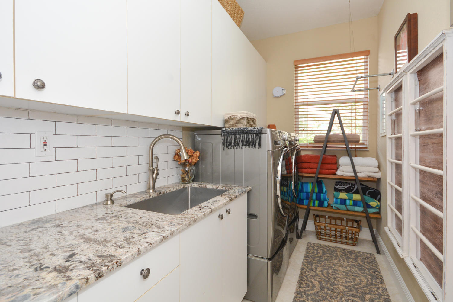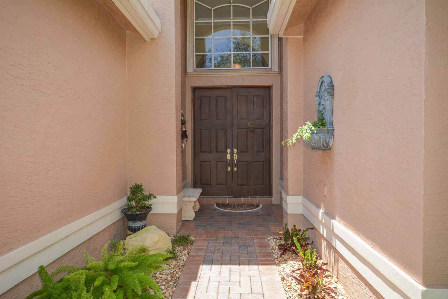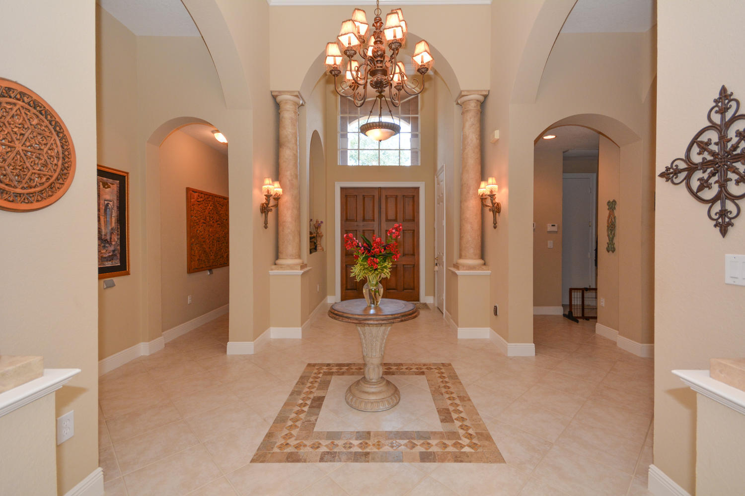 Beautifully appointed 4 bedroom 3 bath one-story home on south backing oversized private lot with trees beyond.Features include accordion hurricane shutters,tile on diagonal,tile design in gallery,crown moldings,'wood' floors in all bedrooms,French doors,custom window treatments,outfitted closets.The gourmet kitchen features glazed wood cabinetry with bump out at double oven,1 year new GE profile stainless steel appliances,Jenn-Air cooktop,center island,desk area,snackbar and separate breakfast nook with rounded seamless window.The family room is open to the kitchen.The master suite features outfitted walk-in closets,a luxurious master bath and French doors to the covered patio.The backyard 'resort' has an oversized marble patio,heated saltwater pool and spa with waterfall and pergola.