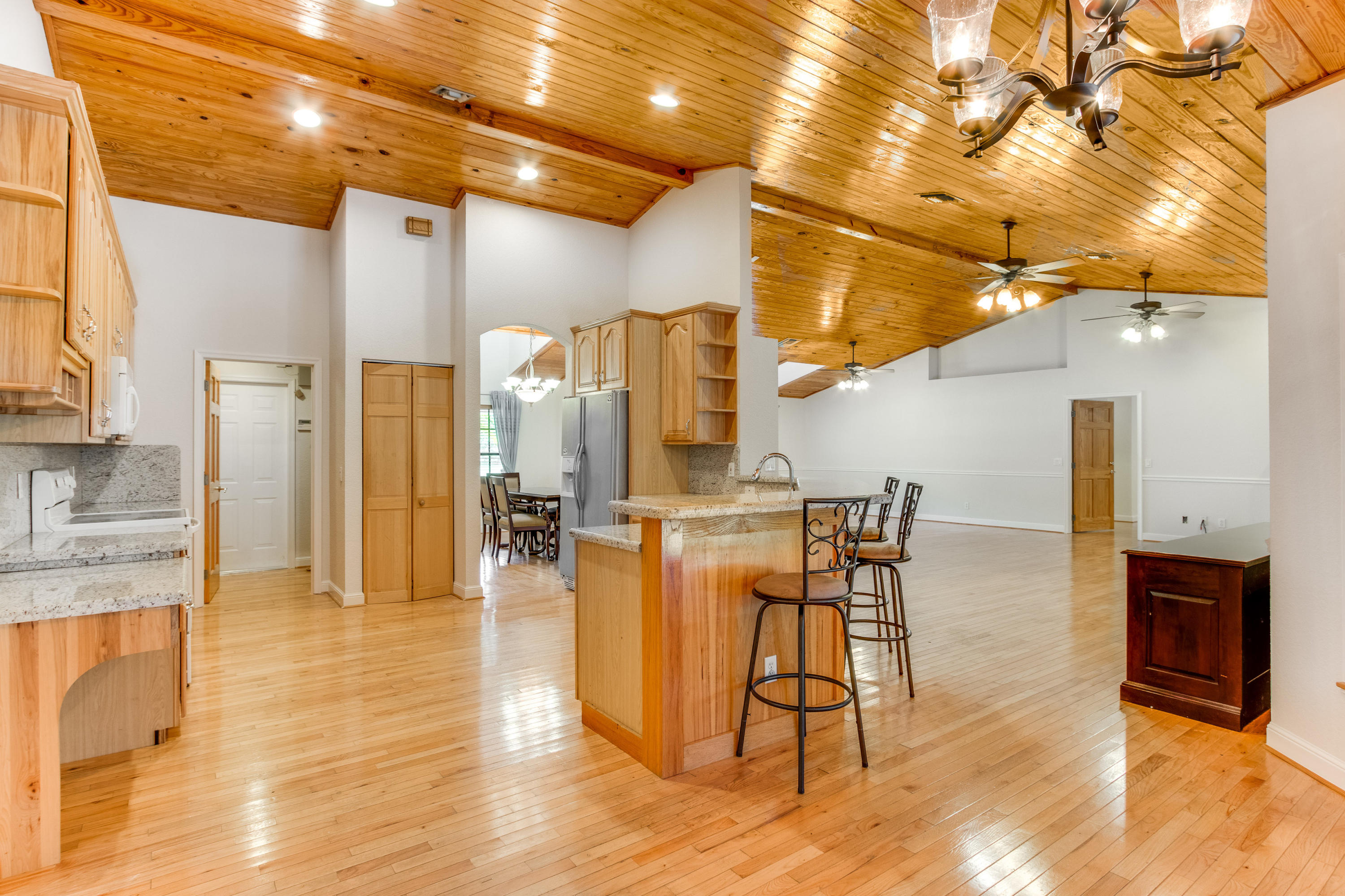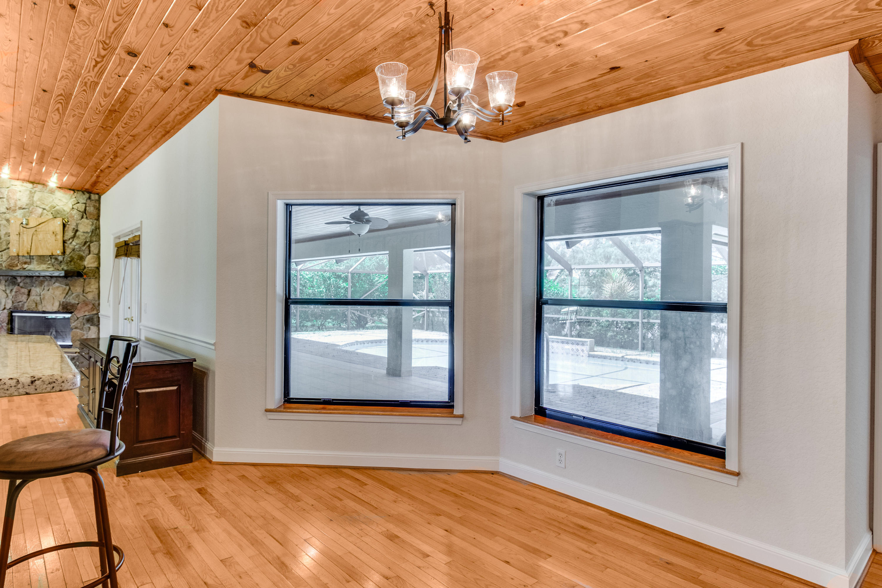 QUIET SMALL ENTRY GATE COMMUNITY WITH CUSTOM HOMES ON 1 ACRE PLUS LOTS. 4 BEDROOM 3 BATH,CEDAR CEILINGS, GREAT ROOM WITH STONE FIREPLACE AND REAL WOOD FLOORS, 20X20 MASTER BEDROOM WITH TWO HUGE CLOSETS, WOOD FLOORS, WHIRLPOOL SPA, DUAL SINKS. SPLIT FLOOR PLAN. ROOFED PATIO AND SCREENED POOL OVERLOOKING LAKE. ON 1.24 ACRES.