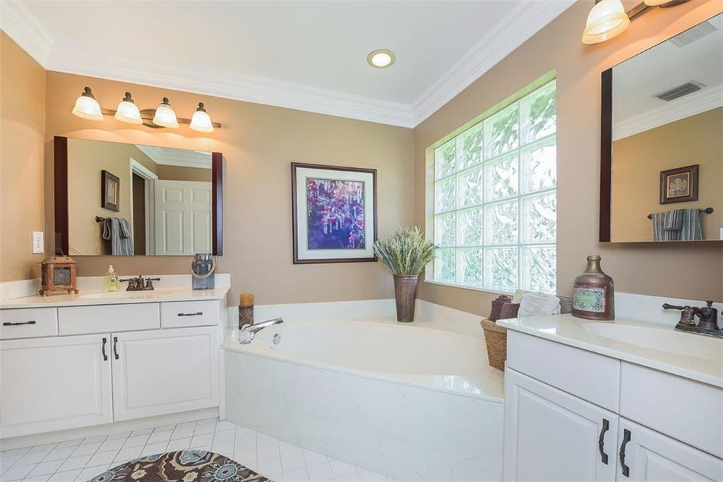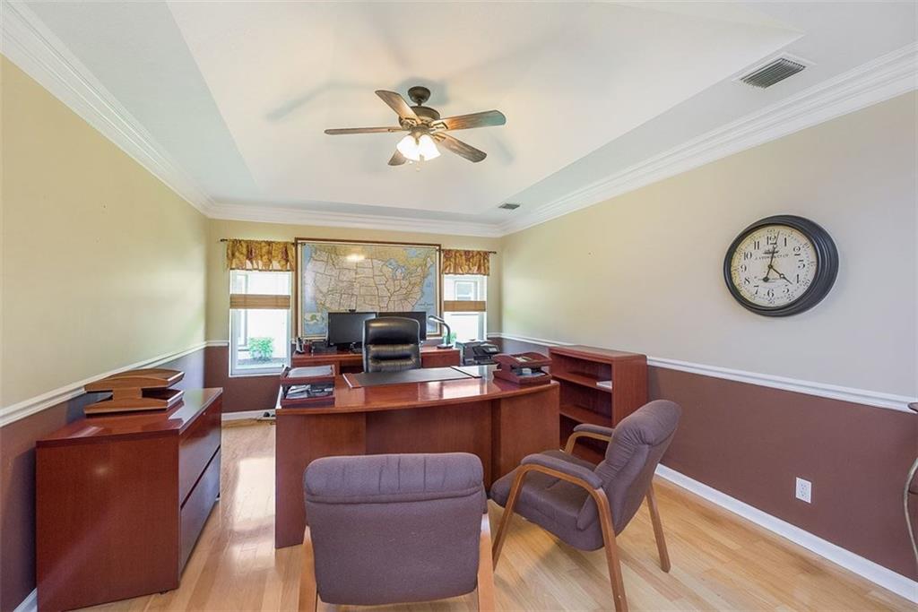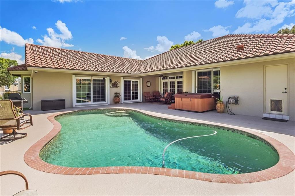 Great Water View!! Upgraded Throughout with Impact Windows and Doors, Newer Roof, New Flooring, Beautiful kitchen and baths and more. The back yard and pool area is huge and fully fenced. Large circular drive, lots of landscape and shade trees. The formal dining room is being used as a grand executive office. Optional use of media room as 4th bedroom makes for added functional space.