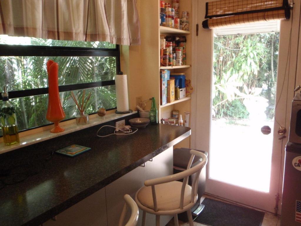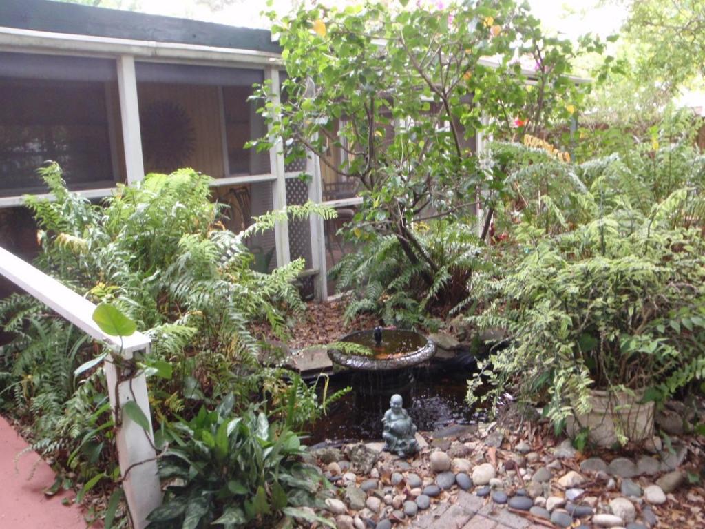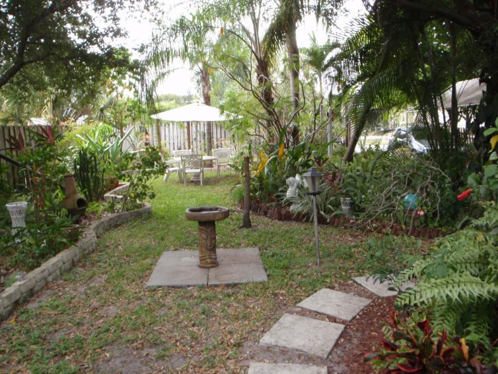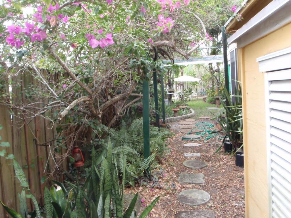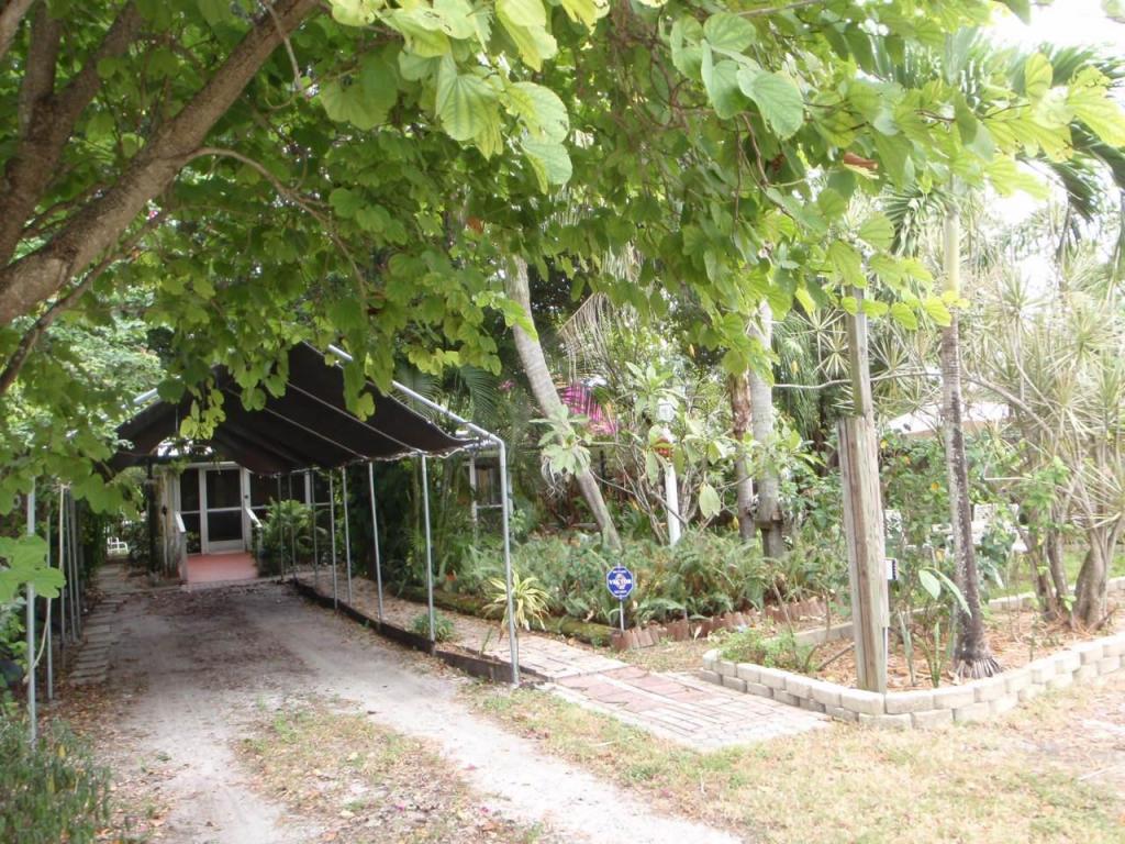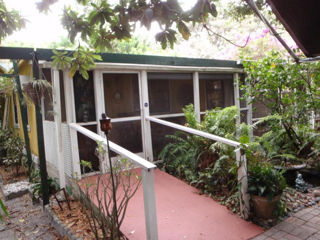 Looking for privacy? This is a MUST SEE!!! Go thru the gate and enter into a tropical paradise! Lush landscaping keeps the property cool and clean while giving an abundance of beauty. This adorable cottage is larger than it looks. .Enchanting gardens, wind gently whispering thru the palm trees, soft colors and sounds all enhance the charm of this exquisite cottage. A sense of well-being surrounds you as soon as you enter thru the front gate. The comfort of this home is felt immediately as you step onto the front porch and into the house. The kitchen has been upgraded to include a GE gas range, a new refrigerator, newer countertops and a breakfast bar that looks out to a tropical view.